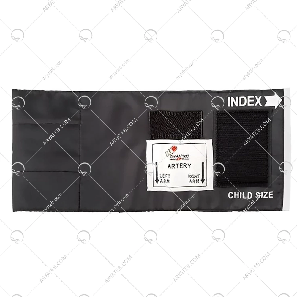 کاف رویی فشارسنج اطفال زنیت مد از لحاظ ظاهری به وضوح باریکتر، کوتاهتر و در برخی مدلها دارای انحنای ملایمتری نسبت به کافهای بزرگسال است تا بهتر با شکل مخروطی بازوی کودک مطابقت داشته باشد. جنس پارچه آن معمولاً از نایلون یا پلیاستر بافته شده با کیفیت بالا و نیمهمات است که به سرعت خشک میشود و مقاومت سایشی بالایی دارد. وجه تمایز اصلی در علائم بصری است: یک خط ضخیم یا پیکان با عنوان "شریان" یا "Artery" برای راهنمایی قرارگیری صحیح بر روی شریان براکیال، و دو خط راهنما (Range Lines) که محیط اندام کودک باید بین آنها قرار گیرد تا سایز کاف تأیید شود. مکانیزم اتصال شامل بستهای قلاب و حلقه (Velcro) است که با قدرت چسبندگی بالا اما با پارچهای نرم در لبهها طراحی شدهاند تا به پوست حساس کودک آسیب نرسانانند. برخی مدلها ممکن است برای کاهش اضطراب کودک، دارای رنگهای ملایم یا الگوهای بصری ساده باشند.