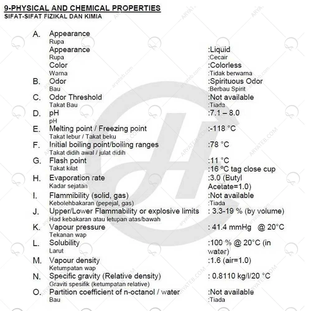 خلوص و استاندارد: الکل باید از نظر خلوص و استانداردهای بهداشتی تایید شده باشد.