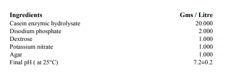 محیط ایندول نیترات یا (محیط تریپتون نیترات) به دلیل داشتن مواد مغذی از رشد هوازی ، میکروارفیل ها و بی هوازی های اجباری و جلوگیری می کند. هدف این محیط شناسایی تولید و ایندول و کاهش نیترات در طیف گسترده ای از میکروارگانیسم ها می باشد. کازئین هیدرولیزات حاوی تریپتوفان میباشد که تحت تأثیر میکروارگانیسم های خاصی قرار گرفته و منجر به تولید می شود.