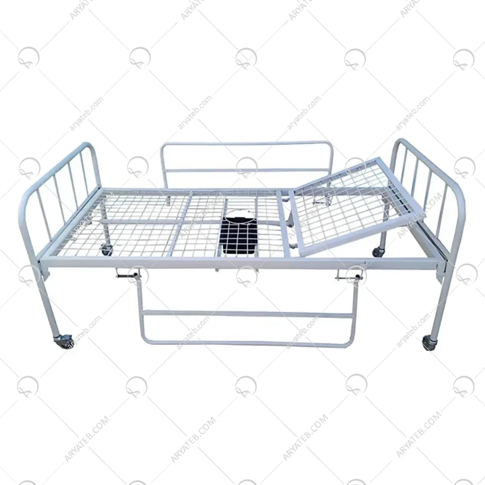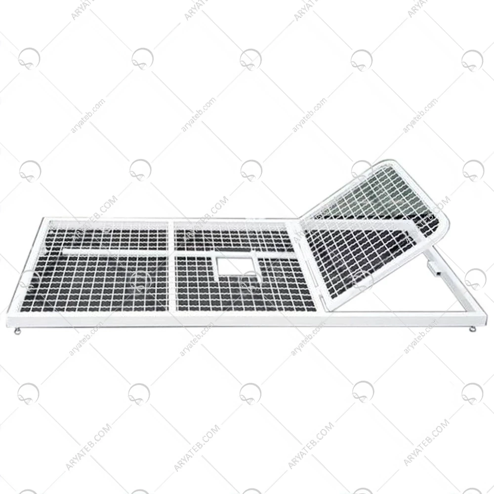 - رویه تخت از توری فلزی ساخته شده است که به تهویه بهتر کمک میکند و از تعریق بیش از حد بیمار جلوگیری میکند. این رویه به گونهای طراحی شده که مایعات به راحتی از آن عبور کرده و تجمع نمیکنند، که این امر برای حفظ بهداشت و جلوگیری از زخم بستر بسیار مفید است.