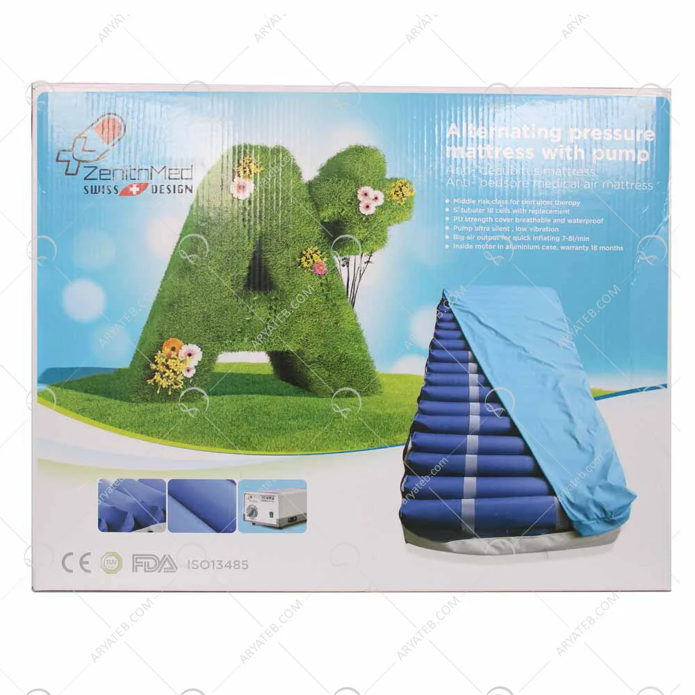تشک مواج zenithmed حالت سلولی دارد و پر از هوا است که از ایجاد گره جلوگیری می کند و فشار هوای تشک را مختل می کند. هر ده دقیقه یک بار توسط یک پمپ پر می شوند. پمپاژ مداوم هوا در تشکهای بادی باعث گردش خون در ناحیه کمر میشود و از تعریق بدن جلوگیری میکند که باعث بهبود یا جلوگیری از ظهور زخمها میشود. این طراحی خلاقانه عضلات بیمار را از فشار استاتیک طولانی مدت در یک موقعیت ثابت خلاص می کند که منجر به زخم های فشاری می شود و راحتی بیشتری را برای بیمار فراهم می کند.