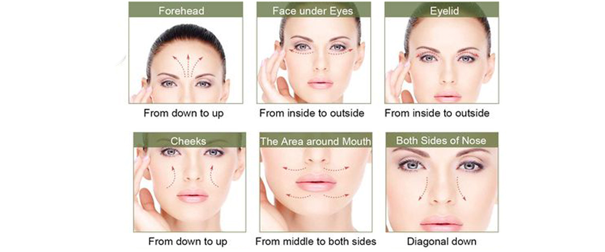 - سر کوچک غلتک : سر کوچک آن قوس ابرو تا شقیقه ها، ناحیه زیر چشم، خطوط ظریف لبه بیرونی چشم ها، خطوط دور بینی، خطوط دور دهان و چانه را ماساژ دهید.