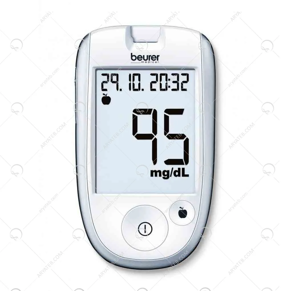 دیابت چیست؟ دیابت بیماری است که در آن میزان قند در خون فرد بیش از حد بالا میباشد زیرا بدن نمیتواند آن را به درستی استفاده کند . همانطور که میدانید کنترل دقیق قند خون در جلوگیری از عوارض دیابت بسیار تاثیر گذار است. افرادی که انسولین تزریق میکنند یا دچار افت قند خون میشوند باید به توصیه پزشک روزانه میزان قند خون خود را اندازه بگیرند. از سال 1980 تست قند خون بصورت روزانه توصیه شده است . در گذشته برای این کار بیماران به آزمایشگاه مراجعه میکردند اما امروزه با ساخت دستگاههای تست قند خون خانگی این مشکل برطرف شده است. تا حدود دهه 80 میلادی تست قند خون فاقد دستگاه بود یعنی فقط از یکسری نوارهایی تشکیل شده بودند که در تماس با قند خون دچار تغییر رنگ میشدند. چیزی که در اینجا اهمیت دارد میزان دقت دستگاه است تا نتیجه دقیق به ما بدهد. تعدادی شرکت سازنده ابزارهای اندازه گیری سلامت، اقدام به ساخت دستگاه تست قند خون کردند. یکی از این شرکت ها، شرکت بیورر می باشد که محصولات آن جایزه های معتبری دریافت کرده است. دستگاه تست قند خون که شرکت بیورر ساخته دارای 480 مورد حافظه است و میانگین نتایج را نشان میدهد. صفحه نمایشگر بزرگ دارد که روی آن میانگین نتایج ، هشدار باتری، ساعت و باتری قابل مشاهده میباشد. برای تست احتیاج به 0.6 میکرولیتر خون است و بعد از 5 ثانیه نتیجه را نشان میدهد. در بعضی از دستگاهها کد بسته نوار از یک بسته به بسته دیگر متفاوت است و برای استفاده باید کد را وارد کرد . اما این دستگاه احتیاج به وارد کردن کد ندارد و بعد از وارد کردن نوار، کد را شناسایی میکند.