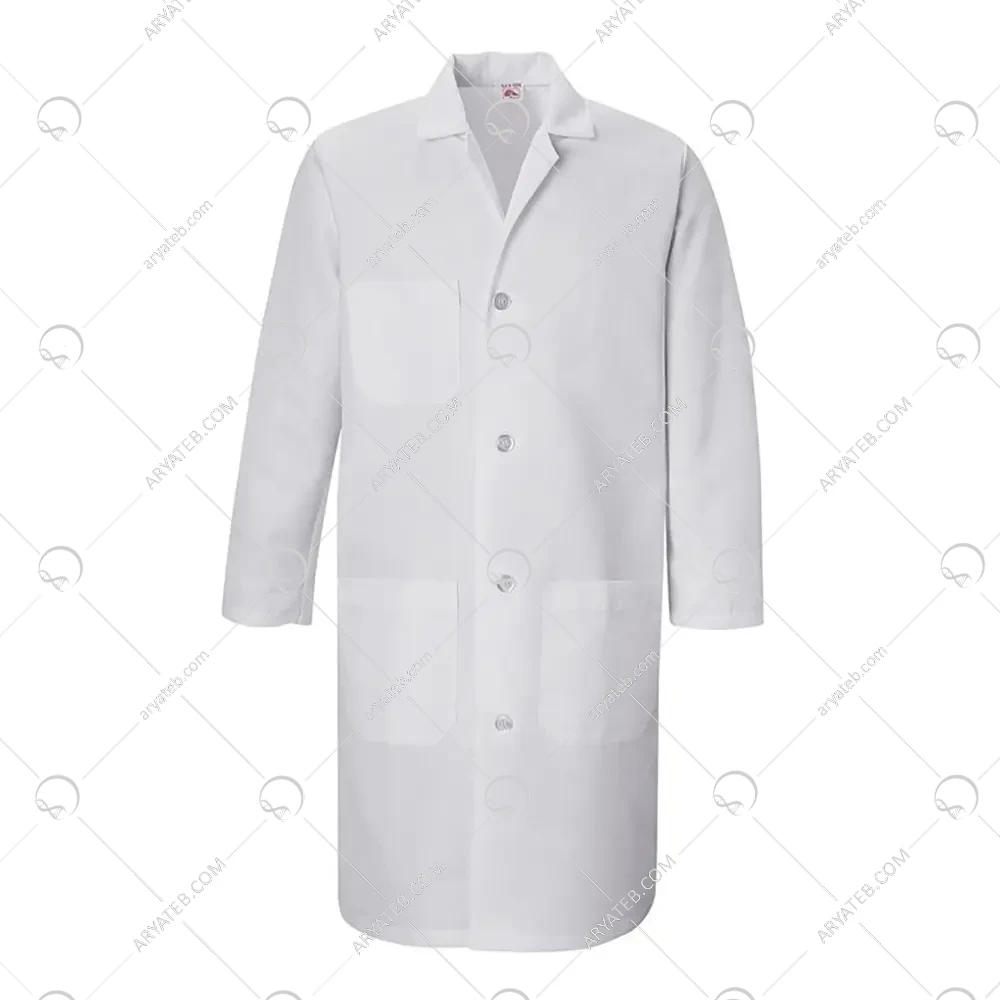 روپوش سفید مردانه یقه گرد از جنس بسیار مرغوب و با کیفیتی تئلید شده است و بیشتر از جنس تترون تولید شده است و نازک و سبک هستند و بسیار مناسب فصل های گرم هستند و در سایز های متفاوتی در بازار عرضه می گردند و می توان از آن در بخش های مختلف بیمارستان استفاده نمود ودر همحیط های بیمارستانی و پزشکی و هم چنین در محیط های صنعتی و تولیدی می توان از این روپوش ها استفاده نمود و بر طبق تجهیزات پزشکی استفاده از این روپوش های سفید بر طبق وزارت کار در سراسر جهان الزامی می باشد و استفاده از لباس کار و کفش کار از جمله حداقل های تجهیزات ایمنی برای کار در این محیط های پزشکی و بیمارستانی است حتی می توان برای امنیت بیشتر از دستکش کار و هم چنین از عینک ایمنی و در ضمن از ماسک تنفسی نیز استفاده نمود. و طرح این روپوش ها به صورت کتی هستند در ناحیه کمر و یک جیب کوچک بر روی سینه تعبیه شده هستند. این روپوش های سفید فاقد هر گونه آستر هستند و بیشتر از جنس پارچه ترگال و تترون تولید شده است. اندازه این روپوش ها در سایزهای بسیار متفاوتی هستند و در سایز های لارج و ایکس لارج و هم چنین در سایز دو ایکس لارج می باشد.