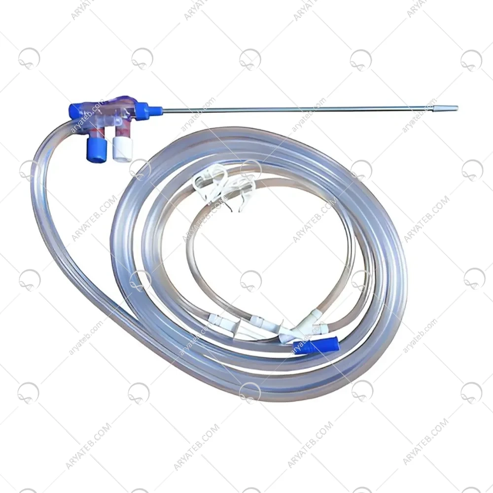 - پس از باز کردن بسته بر روی میز جراحی ابتدا ،کانکتور ساکشن به لوله و دستگاه ساکشن وصل می شود. سپس، اسپایک های شستشو به سرم ها اتصال می یابد. سپس با کار گذاری تروکار 5 در داخل بدن و شروع جراحی ، جراح می تواند در صورت لزوم سرساکشن را از طریق تروکار وارد نموده و استفاده نماید.