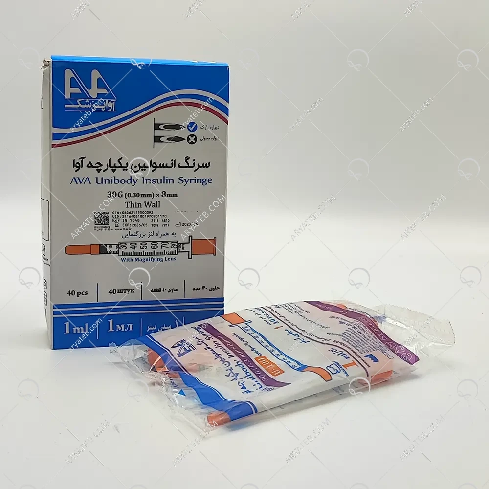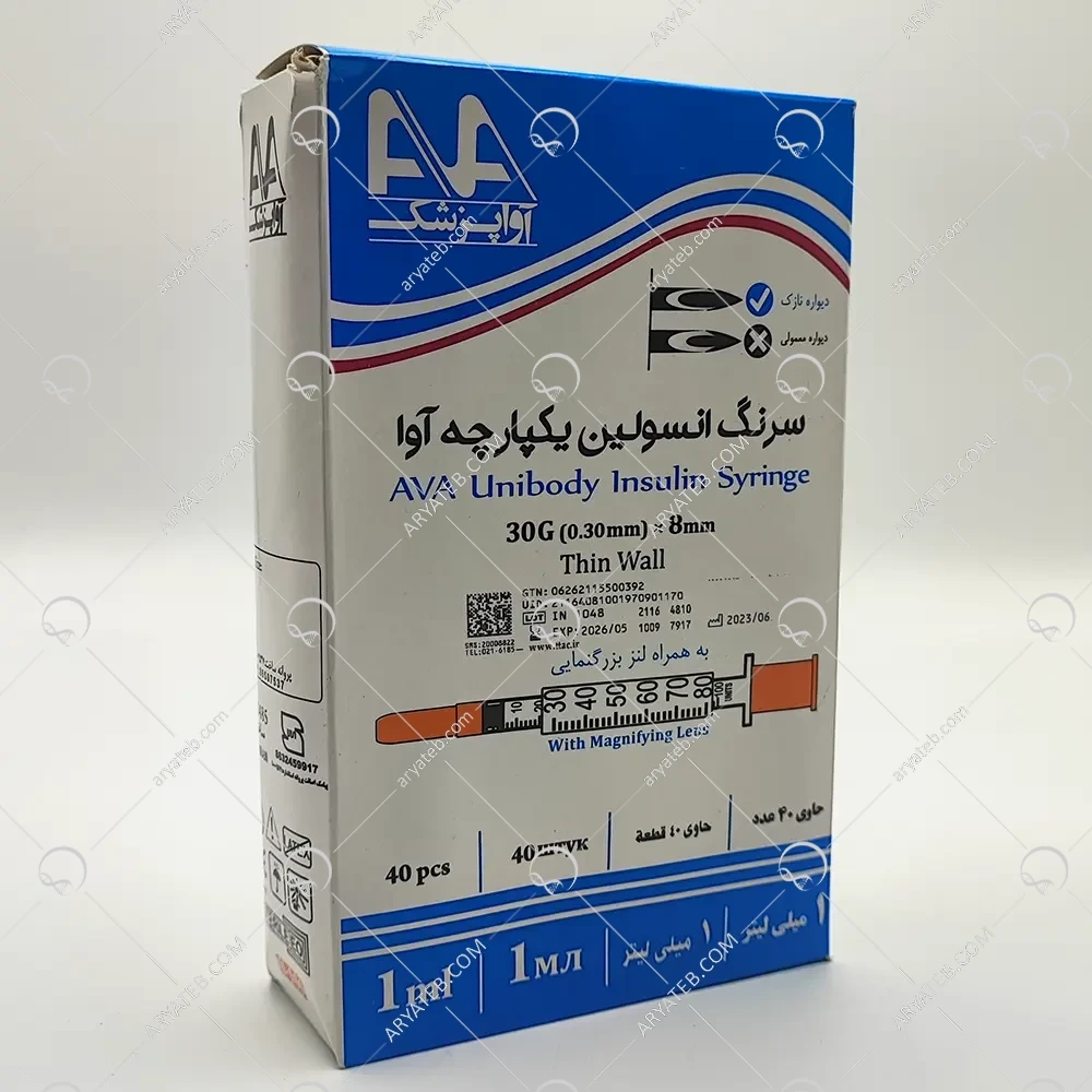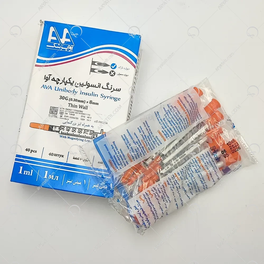 - مشخصات سرنگ انسلین آوا: برای تزریق انسولین به بیمار یکی از روش که باید انجام شود تزریق انسولین، می باشد که با استفاده از سرنگ انسولین انجام می گیرد. این سرنگ ها با توجه به نوع خود کاربرد بسیار خوبی را برای تمام سنین دارند معمولا در سرنگهايي كه سر سوزن آن از بدنه جدا ميشود، فضاي مردهای وجود دارند که مقداري انسولين در آن باقي ميماند و محاسبه دوز انسولين تزریق شده را براي فرد ديابتي مشكل ميسازد. تولید سرنگ انسولین یکپارچه این مشکل را به حداقل میرساند. که سرنگ انسلین آوا نیز با بدنه یکپارچه خود بسیار راحت و آسان قابل استفاده می باشد.