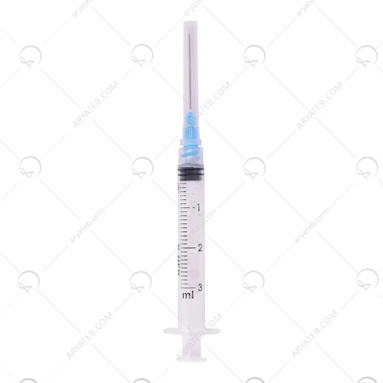 سوزن با ظرفیت ۳ سی سی: دارای گیج ۲۳ و هاب سر سوزن آبی