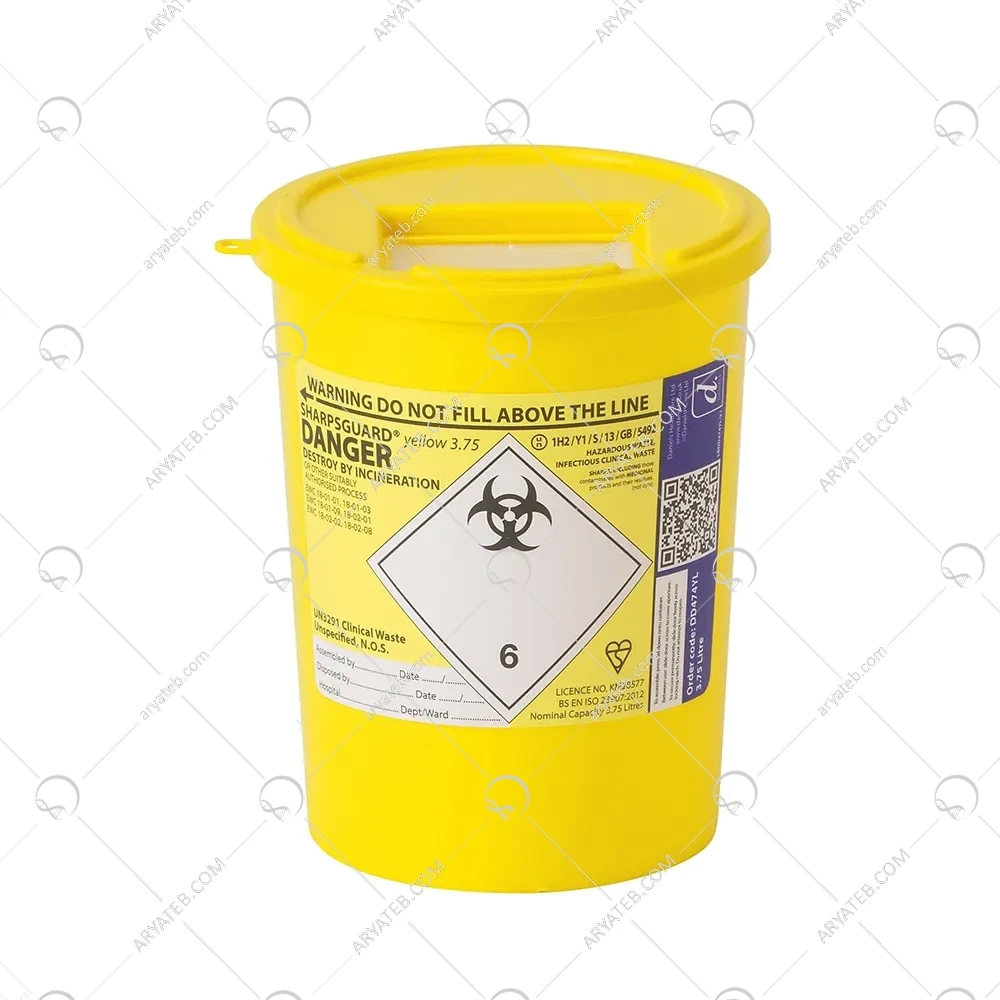 ویژگی ظاهری سیفتی باکس 4 لیتری شامل بدنه زردرنگ با درب قرمز یا زرد است که با علامت خطر بیولوژیکی (Biohazard) مشخص شده است. این ظرف معمولاً به شکل استوانهای یا مکعب مستطیل طراحی میشود و دارای دهانه گشادی برای دفع آسان پسماندهاست. خط نشانه حداکثر ظرفیت (Maximum Filling Line) روی بدنه مشخص است و قفل دو مرحلهای (موقت و دائم) امنیت را افزایش میدهد. وزن سبک و طراحی ارگونومیک، جابهجایی و نصب آن را آسان میکند. برخی مدلها دارای شیارهای جداکننده سرسوزن یا دسته برای حمل هستند.