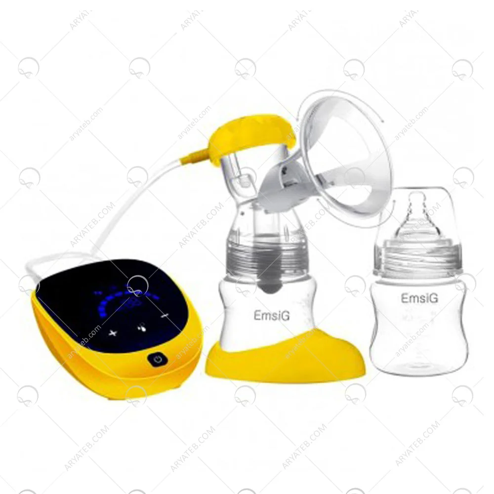 امروزه شیر دوش ها در میان مادران بسیار پرکاربرد شده است، مخصوصاً مادران جوانی که تجربه بچه داری و یا شیردهی را ندارند از این شیردوش ها استفاده می کنند. ما در ادامه می خواهیم درباره شیردوش برقی امسیگ مدل BP24-plus صحبت کنیم. شیردوش برقی امسیگ دارای طراحی و فناوری های بسیار جالبی می باشد. از آنجایی که طراحی این شیردوش برقی ارگونومیک است و رابط سیلیکونی بسیار نرمی را دارا می باشد برای هر سایز سینه مناسب است. قطعاتی که در این شیردوش برقی استفاده شده است دارای مواد غیر مضر می باشد و این قابلیت را دارد که بتوان آن را در آب جوش استریل کرد. شیردوش برقی امسیگ دارای صفحه نمایشگر ال سی دی بسیار بزرگی می باشد که نور آبی را نیز دارا می باشد و باعث شده تا طراحی بسیار زیبایی را به این شیر دوش دهد. شما می توانید حالت های مکش شیر از پستانتان را با استفاده از این شیردوش برقی تنظیم کنید.دکمه روشن و خاموش موجود در این شیر دوش به صورت جداگانه می باشد و زمان شمار ۳۰ دقیقه ای را نیز دارا است. زمانی که شما این شیر دوش برقی امسیگ مدل BP24_plus را خریداری می کنید، این شیر دوش به همراه کابل USB، دو شیشه شیر به گنجایش های ۱۲۰ سی سی، یک باتری با دوام و آمپر بالا و آداپتور می باشد. همچنین یک ساک بزرگ بنددار و یک پایه نگهدارنده نیز با خرید این شیشه شیر به شما تعلق می گیرد. جنس شیشه شیرهای این شیردوش برقی پلاستیک است و اگر می خواهید که وزن آن را نیز بدانید، باید بگوییم که وزن آن ۷۵۸ گرم است و ابعاد آن ۱۹ در ۱۶ در ۲۰ سانتی متر می باشد.