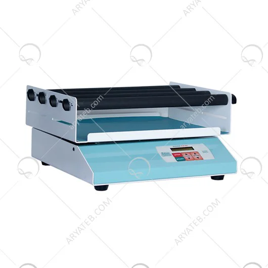 تکان دهنده فلاسک Erlenmeyer دارای 4 بازوی متحرک و یک صفحه گردان با ابعاد 34×44 و موتور دستگاه با بلبرینگ های دوار و دوار است.