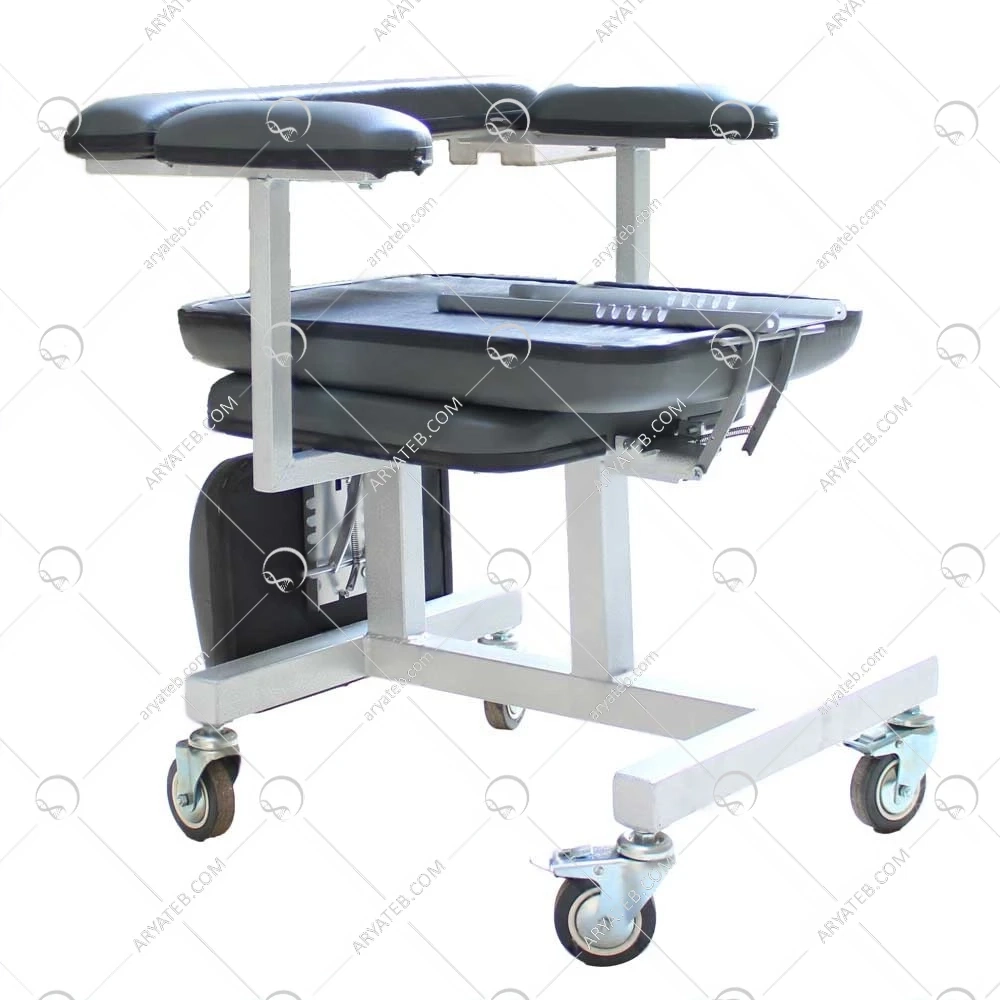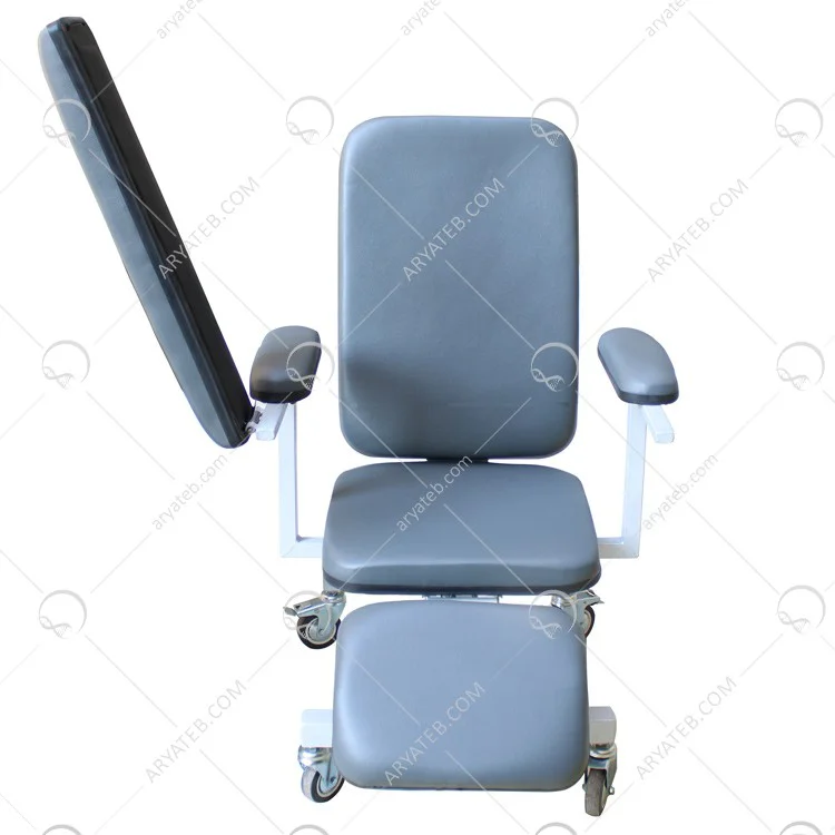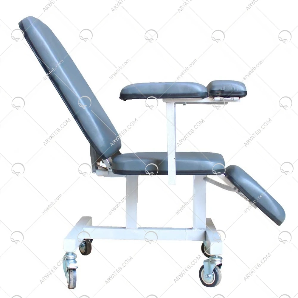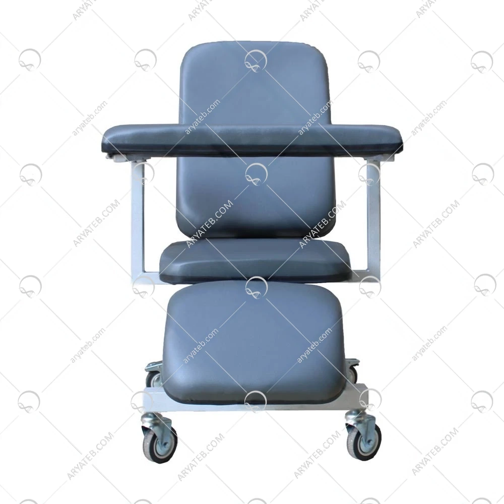 صندلی خونگیری وسیله ای می باشد که روند خونگیری را تسهیل می دارد تا بیمار در صورت افت فشار بتواند استراحت کند روند آزمایش به کمک صندلی بسیار راحت می باشد کافیست که دستان خود را درون محفظه ی که موجود است قرار دهید و نمونه گیری را انجام دهید این صندلی ها از نظر مقاومت بسیار مقاوم می باشند طوری که دارای رویه فوم می باشد قابلیت تخت خوابشویی را دارد برای این که بدنه استیل یا فلز آن در برابر هوا واکنش ندهد و قابلیت ضد زنگی را بیابد مقداری رنگ الکترواستاتیک را بدنه صندلی بزنید تا ضد زنگ شود این صندلی درست مانند یک کمک کننده عمل می کند.