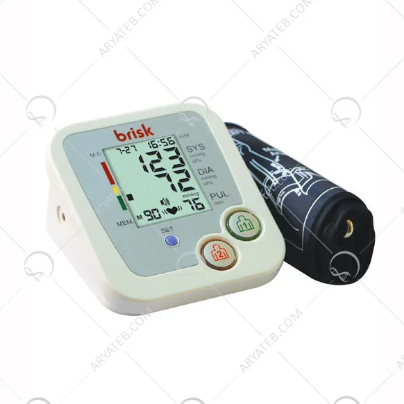 فشارسنج سخنگوی فارسی و دارای سیستم اعلام صوتی. دارای دو حافظه 60 تایی برای دو کاربر یعنی به راحتی دو فرد می توانند از این محصول استفاده کنند و نتایج هر کدام جداگانه ثبت شود. نمایشگر ضربان قلب مزیت قابل توجه ی است چون میتوان با مشاهده ضربان قلب از شدت تمرین آگاه شد و تمرین مناسبی را تنظیم کرد. با توجه به پیشرفت تکنولوژی و طراحی انواع فشار سنج لزوم استفاده از این محصول برای افراد بیمار و استفاده آن در منزل واجب می باشد. اندازه گیری فشارخون به روش اسلومتریک .دارای کیف و آداپتور و تب سنج از قابلیت های این محصول می باشد.این فشارسنج با باتری کار می کند و باتری ها قابل شارژ نمی باشد. نوع فشارسنج بازویی بریسک PG 800B: دیجیتال بازویی برای استفاده افراد با دور بازو استاندارد. عملکرد : تمام اتومات برای سفارش یک فشارسنج خوب به نکاتی همچون دقت در سنجش و تخمین نتایج باید توجه کنید.