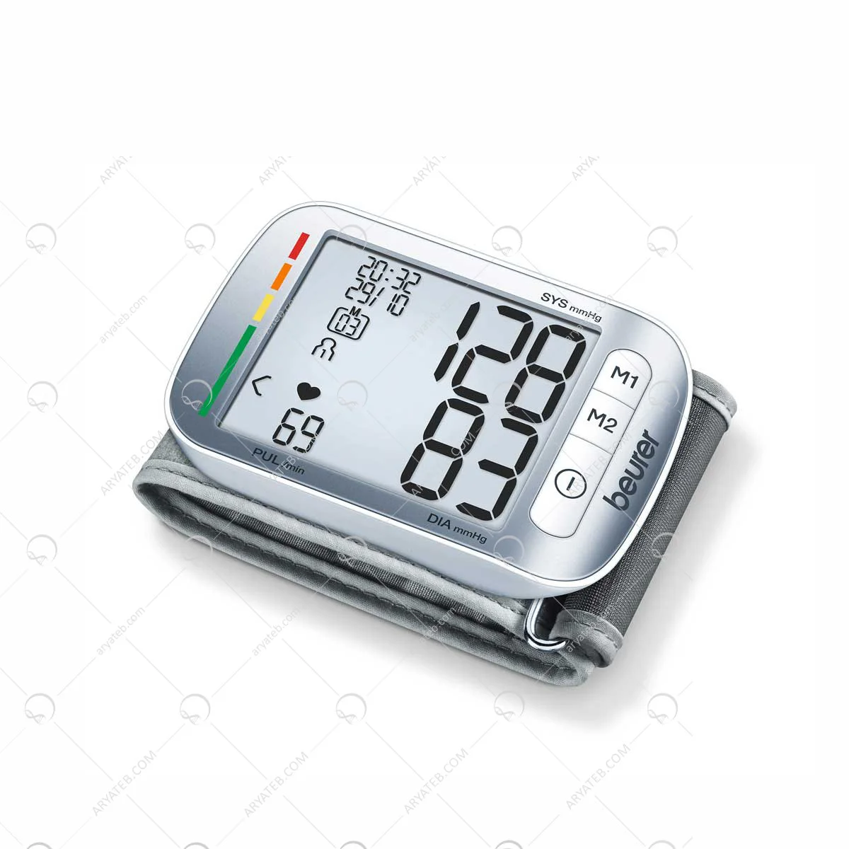 - فشارسنج بیورر برای اندازه گیری فشارخون و ضربان قلب طراحی شده و در بیماران اندازه گیری میانگین از اهمیت بالایی برخوردار است , این دستگاه می تواند میانگین 7 روز اندازه گیری شده را نمایش می دهد .این محصول می تواند آریتمی را تشخیص و اندازه گیری نمایید و ذخیره کند .بدین معنی که ریتم نامنظم قلب و تپش را اندازه گیری و اعلام نمایید .از خصوصیت آن این است که اگر اندازه گیری دارای خطا باشد , خطای محاسباتی را اعلام می کند . این محصول دارای باطری غیرقابل شارژی طراحی شده که منبع تغذیه دستگاه می باشد و در صورت تمام شدن برق باطری , نمایش تعویض باطری روی نمایگر نشان داده می شود . این محصول روی مچ بسته می شود تا فشار خون را اندازه گیری نمایید . این دستگاه تاریخ و زمان را اندازه گیری می کند و مزیت آن این است که فشار خون را در تاریخ و زمان های اندازه گیری شده را آگاهی یافت .از دیگر مزیت دستگاه این است که دو کاربر می تواند از آن استفاده کرده و دارای 120 جایگاه حافظه برای ذخیره اطلاعات مربوط به اندازه گیری فشار خون می باشد . و این محصول دارای صفحه نمایش بزرگ بوده و اطلاعات را خوانا و بزرگ به نمایش در می آورد . نوع کاربری آن خانگی بوده و از نوع مچی می باشد و برای افراد سالمند و مسن این مزیت را دارد که صبح و عصر که فشار خون گرفته شده برای 7 رو ز را ذخیره و میانگینش را محاسبه و با صفحه نمایش بزرگ به کاربر نمایان می نماید .