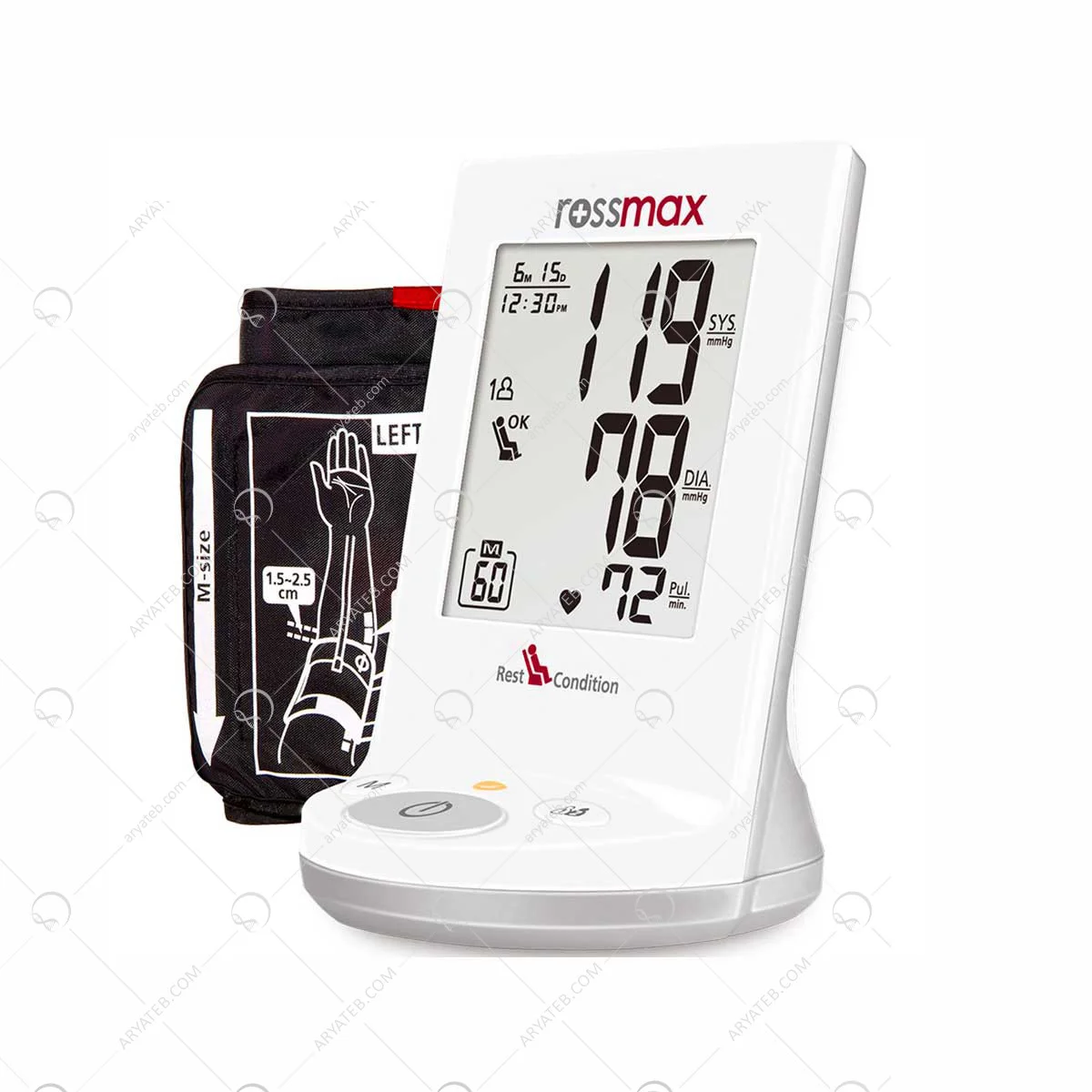 این نوع فشارسنج رزمکس از نوع بازوئی بوده و بر روی بازوی فرد بسته می شود و دارای سنسور تشخیص ثابت بودن بدن می باشد که بدن ثابت نباشد هشدار می دهد . دستگاه دارای نشانگر ریسک فشار بالای خون می باشد و همچنین آشکار ساز ضربان قلب نامنظم یا همان آریتمی می باشد . برای اندازه گیری فشار خون بطور دقیق باید بدن ثابت باشد و دستگاه با کمک سنسور , در صورت ثابت بودن بدن در حین اندازه گیری علامت سکون را روی نمایش گر نشان می دهد . در صورت عدم سکون فرد و ثابت نبودن بدن, دستگاه رکورد را خطا نشان داده و در میانگین سه مورد آخر محاسبه نمی کند . دستگاه می تواند میانگین در بازه های زمانی متفاوت بگیرد ,و حافظه ذخیره سازی برای 90 رکورد را دارد یا 60 رکورد برای هر نفر و جمعا 120 رکورد برای دونفر را ذخیره می کند .این مدل دارای نشانگر محدودهی فشارخون نیز است و ریسک خطرناک بودن وضعیت فشار شخص را نمایش میدهد دستگاه دارای نشانگر, ضربان قلب نامنظم یا آریتمی می باشد . سایز کاف برای افراد 24 تا 36 سانتی متر می باشد و در ساخت کاف از لاتکس استفاده نشده و دستگاه از دو باطری قلمی و آداپتور برای تغذیه انرژی خود کمک می گیرد . در این دستگاه, فشار خون , تعداد ضربان قلب و میانگین سه آخر گرفته می شود . در صورت عدم استفاده از دستگاه پس از 60 ثانیه خودکار خاموش می شود و این مدل با استانداردهای اروپا مطابقت دارد .