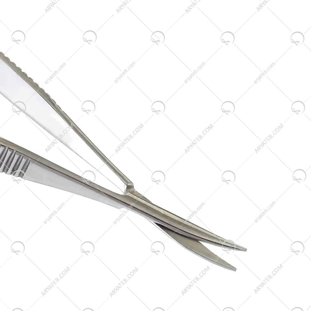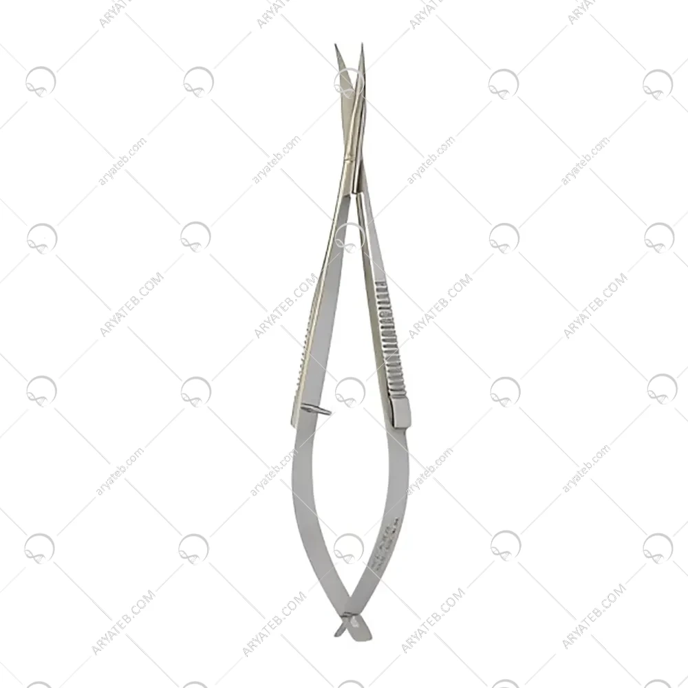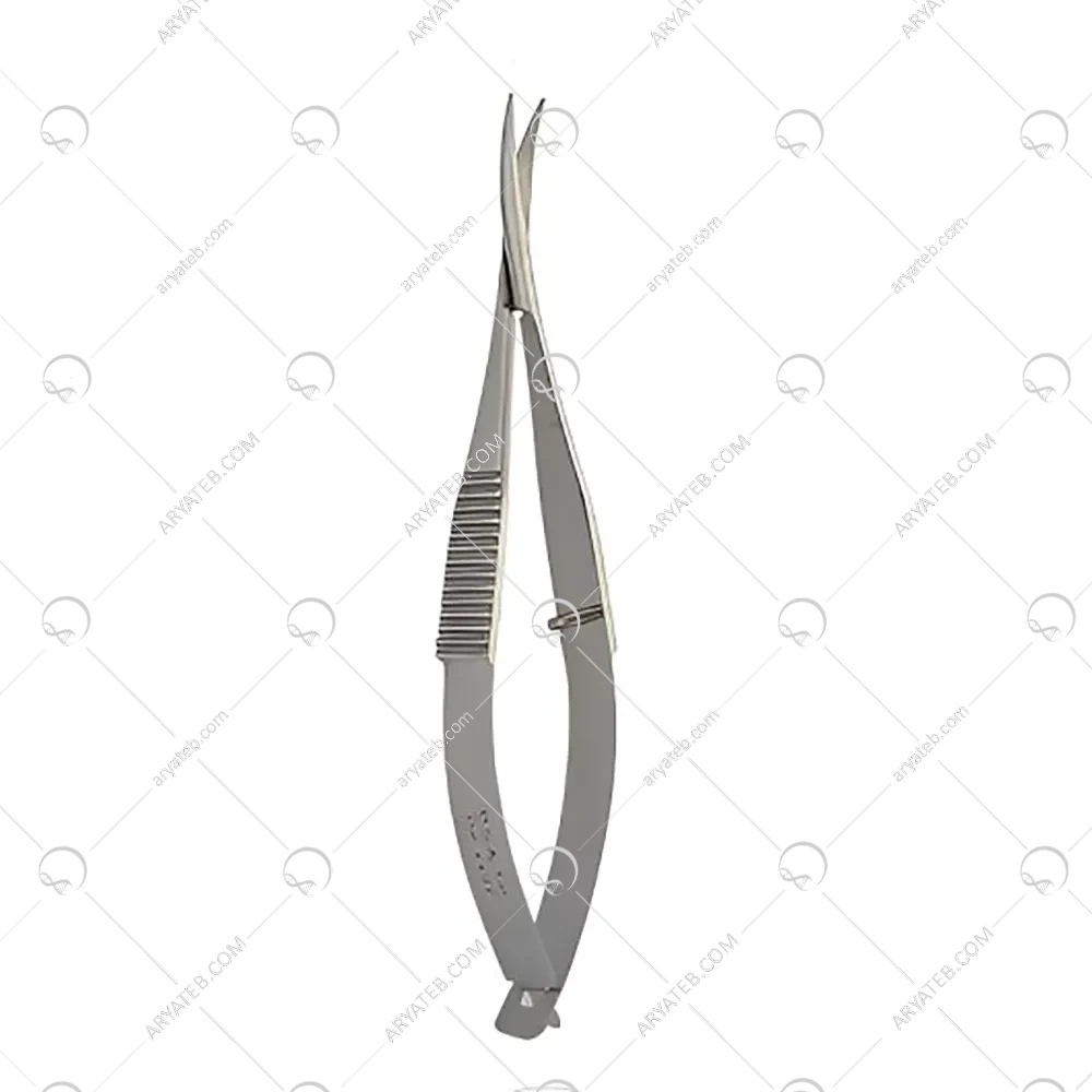 در جراحی های میکروسکوپیک چشمی هنگامی که به عنوان یک ابزار جراحی استفاده می شود، تیغه نیز می تواند به وضوح در زیر میکروسکوپ دیده شود تا درصد خطا کاهش یافته و جراح با کنترل کامل از قیچی استفاده کند.این محصول دارای گیره هایی است که در کنار تیغه های ظریف و طول کلی 3 اینچ زاویه دارند. دسته های این ابزار دارای شیارهای افقی است که امکان نگهداشتن دقیق ابزار را فراهم می کند و کنترل کاربر را افزایش می دهد.