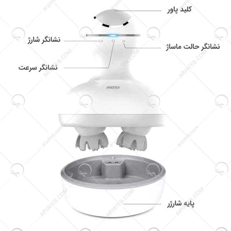 ماساژور سر سه بعدی آیرست از پرطرفدار ترین محصولات این حوزه است. این ماساژور سر با عملکرد ماساژ نرمشی سه بعدی باعث بهبود گردش خون در سر می شود که لذت و آرامش بسیاری را به همراه دارد. افرادی که سر درد دارند و یا خانم هایی که زمان زیادی را بیرون از منزل با حجاب سپری کرده اند. می توانند با استفاده از این ماساژور سر ماساژ لذت بخشی را تجربه کنند. این دستگاه دارای سه یرنامه از پیش تعیین شده است که با باتری کار می کند و می توانید با استفاده از کابل USB آنرا شارژ کنید و همه جا با خود به همراه داشته باشید. یکی از قابلیت های این ماساژور سر ضدآب بودن آن است که حتی می توان در حمام و استخر از آن استفاده کرد. شما می توانید از این ماساژور برای سایر نواحی بدن استفاده کنید. این ماساژور برای جلوگیری از تمام شدن باتری دارای قابلیت خاموشی خودکار پس از 10 دقیقه میباشد. از ویژگی های ظاهری این محصول پایه شارژ آن است که روی هر سطحی می توان آنرا قرار داد.