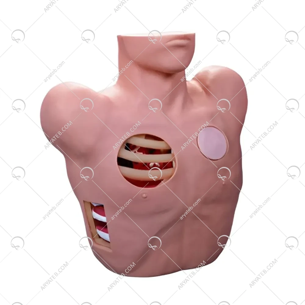 - نیم تنه آموزش چست تیوب با نمایش آناتومی دقیق محل قرار دادن تیوب (نمایش فضای بین دنده ای)