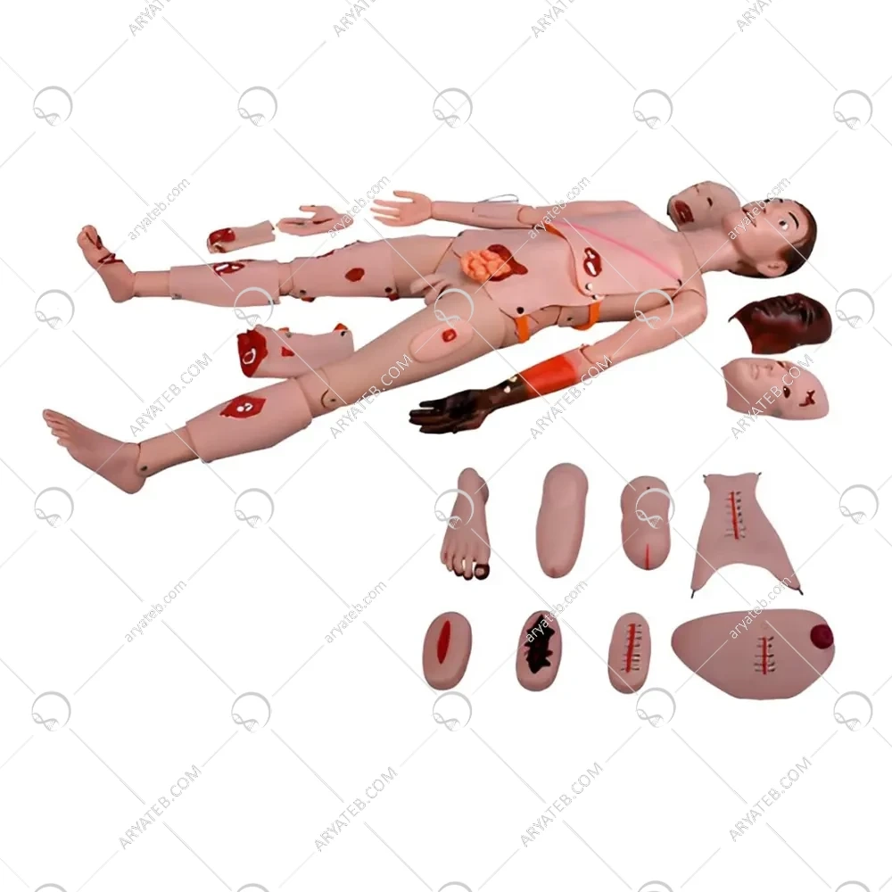 • دارای 17 تکه کیت با قابلیت نمایش انواع زخم بریدگی ، سوختگی ، شکستگی و...