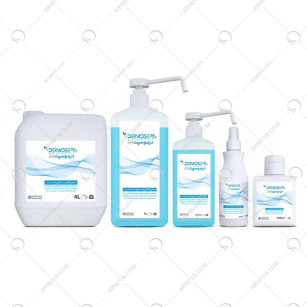 محلول ضدعفونی کننده ی درموسپت محلولی دو الکله مناسب ضدعفونی کردن پوست و اسکراب جراحی می باشد ، این محلول های الکی یکی از راه های موثر برای صرفه جویی در هزینه های درمان عفونت های بیمارستانی می باشند . 80 در صد از عفونت های بیمارستانی از طریق تماس دست ها به یکدیگر منتقل می شوند ، درموسپت موجب از بین رفتن میکروارگانیسم های بیماری زای روی دست می شود و برای ضدعفونی کردن دست افرادی که در مکان های بهداشتی درمانی مانند بیمارستان ها شاغل هستند مورد استفاده قرار می گیرد . ویژگی های محلول ضدعفونی کننده ی درموسپت شامل : اثر ضدمیکروبی قوی و پایدار، داشتن بوی مطبوع که دست ها را خوشبو می کند ، دارا بودن مواد نرم کننده پوست که از خشک شدن پوست دست جلوگیری می کند و آن را نرم می سازد ، و همچنین به عنوان یک ضدعفونی کننده با پوشش میکروب کشی قوی و هم به عنوان یک محلول با مواد تحریک کننده پوستی عمل می کند ، درموسپت به دو شکل محلول و ژل طراحی شده است . از تکثیر یافتن باکتری های گرم مثبت و گرم منفی ، ویروس ها، مایکوباکتریوم هه و قارچ ها جلوگیری می کند و آن ها را از بین میبرد .