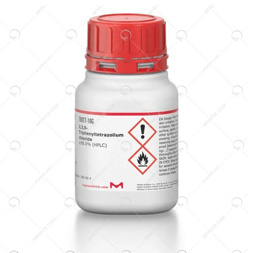 معرف تری فنیل تترازولیوم (TTC) تولید شده توسط شرکت مرک، یک ماده شیمیایی با کیفیت بالا و کاربردهای گسترده در زمینههای مختلف علمی و صنعتی است. این ماده با فرمول شیمیایی C19H15ClN4، به عنوان یک شاخص اکسیداسیون-کاهش عمل میکند و در حضور سلولهای زنده و فعال، به فرمازان قرمز رنگ تبدیل میشود.
