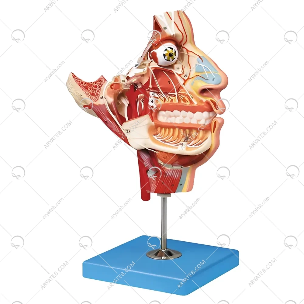 مولاژ جمجمه با عروق و اعصاب یک ابزار آموزشی بسیار مفید است که ساختار و آناتومی جمجمه را به همراه جزئیات عروق خونی و اعصاب به نمایش میگذارد. این مولاژ معمولاً شامل موارد زیر است:
