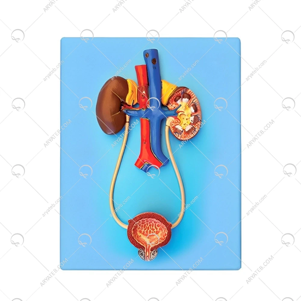 مولاژ دستگاه ادراری در چهار قطعه و ابعاد طبیعی ساخته شده است. در این مولاژ اجزای کلیه ها، غدد فوق کلیوی، میزنای، مثانه و پروستات، عروق بزرگ شکم و عضلات جدار پشتی شکم را با دقت بالایی نشان داده شده است. همچنین ساختمان درونی کلیه و مثانه با برشی طولی قابل مشاهده است. مولاژ دستگاه ادراری با به نمایش گذاشتن دقیق و اجزا و با کیفیت و رنگ طبیعی، ابزاری تخصصی برای آموزش و یادگیری دانشجویان و دانش آموزان به شمار می رود.
