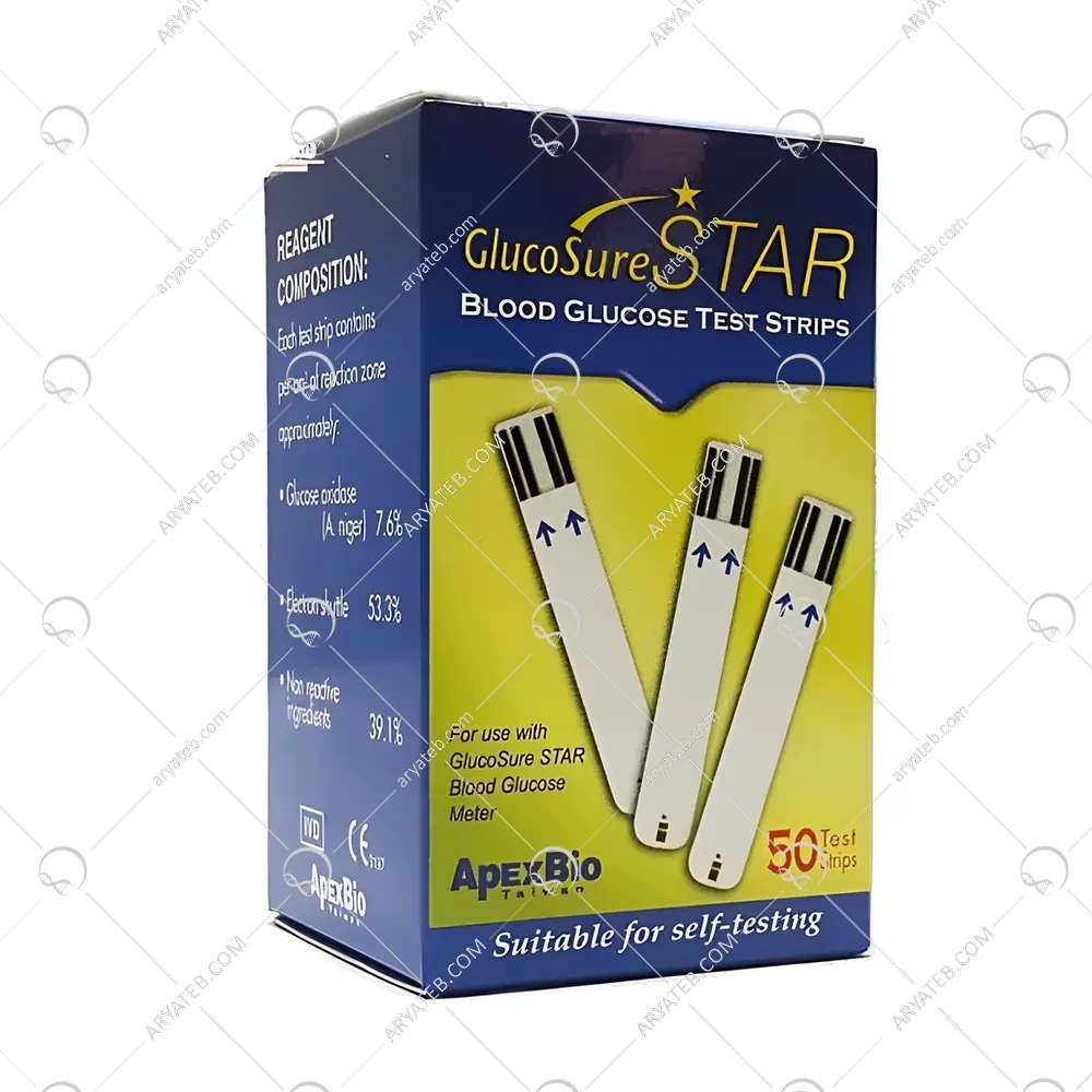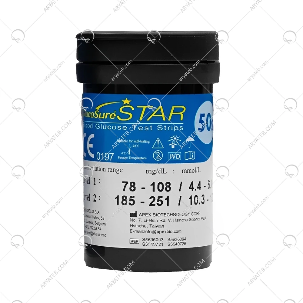 نوار تست قند خون گلوکوشور استار قابلیت عملکرد با دستگاه گلوکوشور استاراپکس بیو را دارد ،دارای هلوگرام است و تاریخ مصرف آن 1/5 سال می باشد ، نوار تست قند خون گلوکوشور استار دارای 50 عدد نوار می باشد که برای نگهداری و محافظت در برابر رطوبت و آلودگی در قوطی قرار گرفته اند . هنگام خون گیری ابتدا باید به کمک قلم خون گیری موجود در روی نوار مقدار خون مورد نیاز را روی نوار تست قرار دهید و سپس آن را درون دستگاه بگذارید ، دستگاه بعد از مدت کوتاهی قند را اندازه گیری کرده و به شما نشان می دهد . نکاتی که هنگام خون گیری باید رعایت کنید عبارتند از : دست ها را با آب و صابون و یا مواد ضدعفونی کننده بشویید ، با دست مرطوب به نوار دست نزنید زیرا دستتان باید کاملا خشک باشد ، بعد از برداشتن نوار مورد نیاز درب قوطی را ببندید و آن را در محلی که رطوبت و تابش نور آفتاب وجود ندارد قرار دهید . در نتیجه نوار تست قند خون گلوکوشور استار نواری برای اندازه گیری مقدار قند خون شما می باشد که به مقدار کمی خون نیاز دارد .