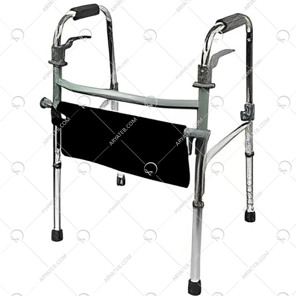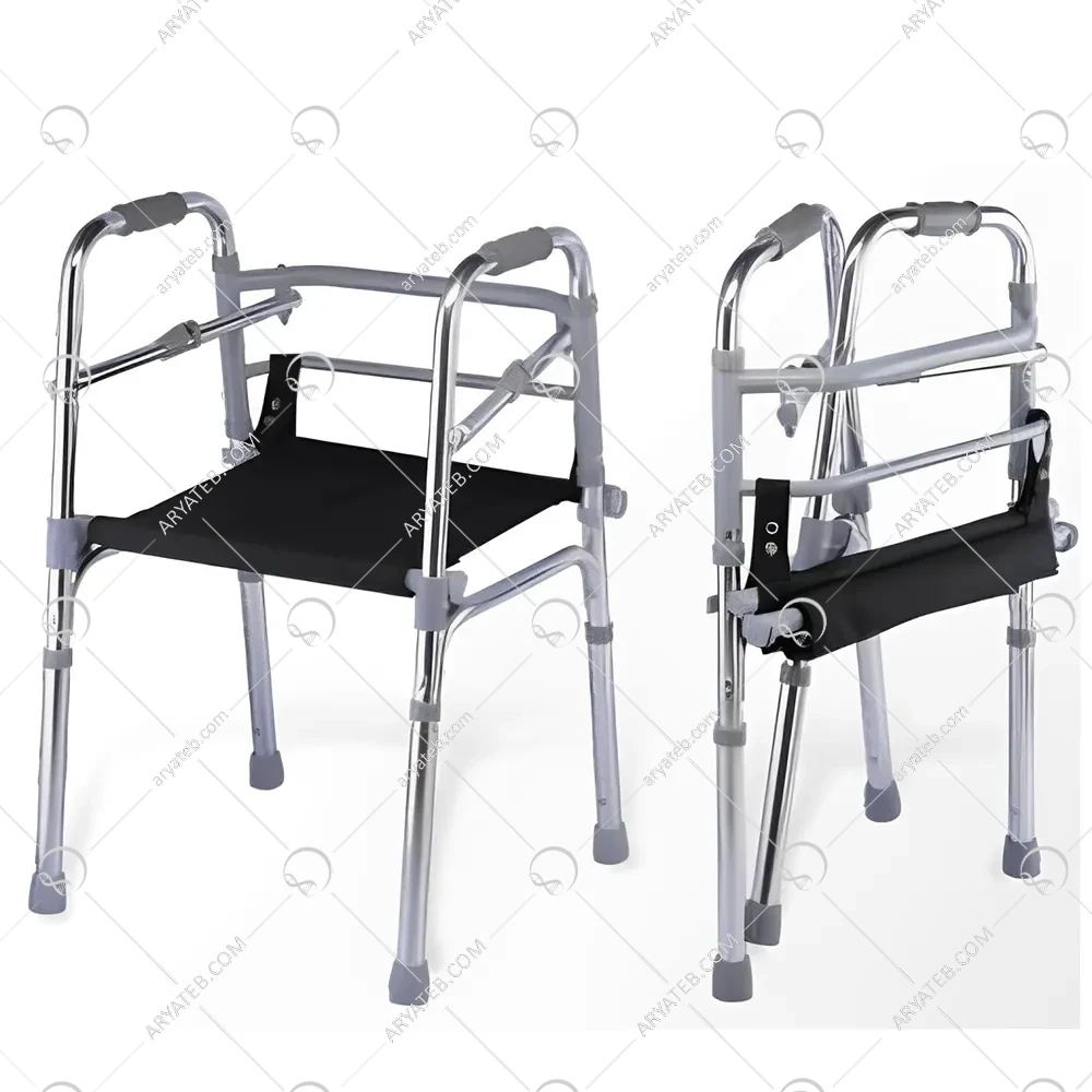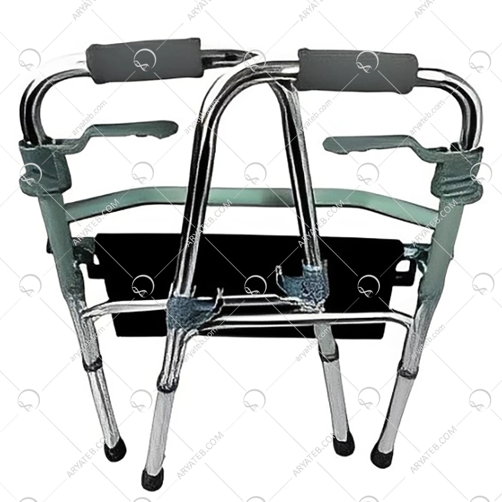 - نوع حرکت : قدم رو / دارای کفی برزنتی جهت استفاده بعنوان نشیمنگاه / دارای گارد دوبل در طرفین و جلو واکر برای تقویت واکر