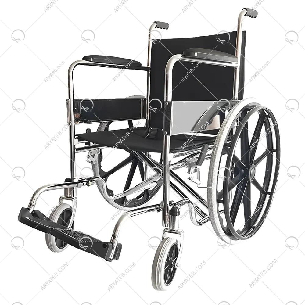 ابعاد این ویلچر در حالت باز 59 سانتی متر و در حالت بسته و 27 سانتی متر میباشد و همینطور که میبینید جای بسیار کمی اشغال میکند زیر پایی و زیر دستی آن متحرک میباشد و بیمار به آسانی از آن استفاده خواهد کرد طول پشتی و کفی آن 40 سانتیمتر است که از جنس برزنت مقاوم ساخته شده است قطر چرخ عقب 60 سانتیمتر و قطر چرخ جلو 20 سانتی متر میباشد