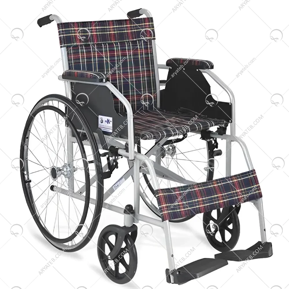 این ویلچر دارای زیر دستی ثابت و زیر پایی متحرک میباشد پهنای کل ویلچر در حالت باز 61 سانتیمتر و در حالت بسته 27 سانتیمتر است و فضای کمی را اشغال میکند پهنای نشیمنگاه آن 40 سانتیمتر است و بیمار روی آن احساس خستگی نخواهد کرد قطر چرخهای عقب 59 سانتیمتر و قطر چرخ جلو 15 سانتی متر میباشد و به آسانی حرکت میکند طول کل ویلچر از عقب تا جلو 95 سانتیمتر است وزن این ویلچر بین 13 تا 15 کیلوگرم است و تا وزن 80 کیلوگرم را تحمل میکند
