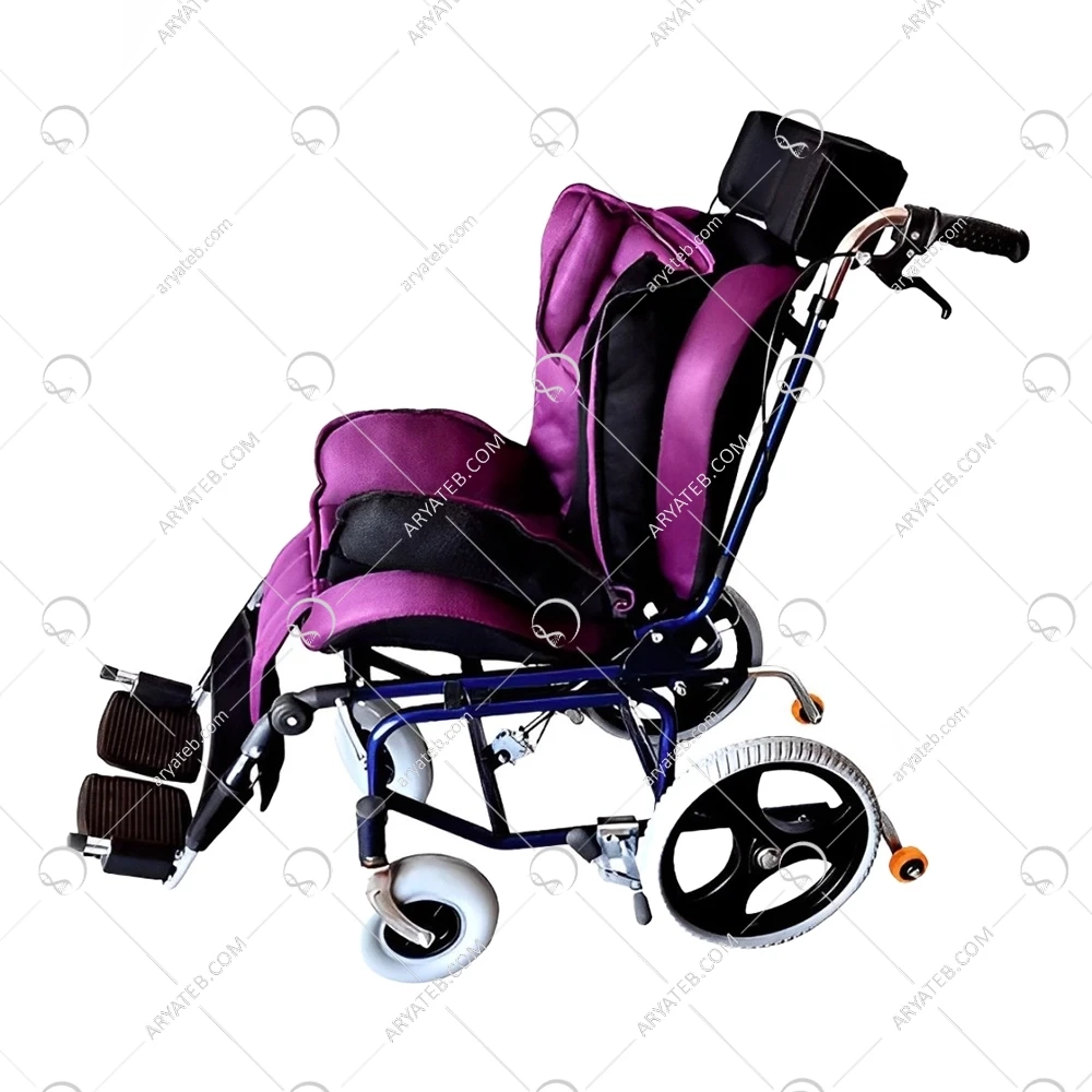 این ویلچر برای بیماران فلج کامل بسیار مطلوب میباشد زیرا روی دسته و چرخ عقب ترمز قرار گرفته است تا بیمار هنگام حرکت بتواند کنترل داشته باشد همچنین برای محافظت از بیمار کمربند ایمنی روی آن تکیه شده است برای راحتی بیمار کفی و پشتی آن ابر دوزی شده است تا بیمار احساس خستگی نکند طول محصول 98 سانتی متر میباشد و جای زیادی را اشغال نمیکند