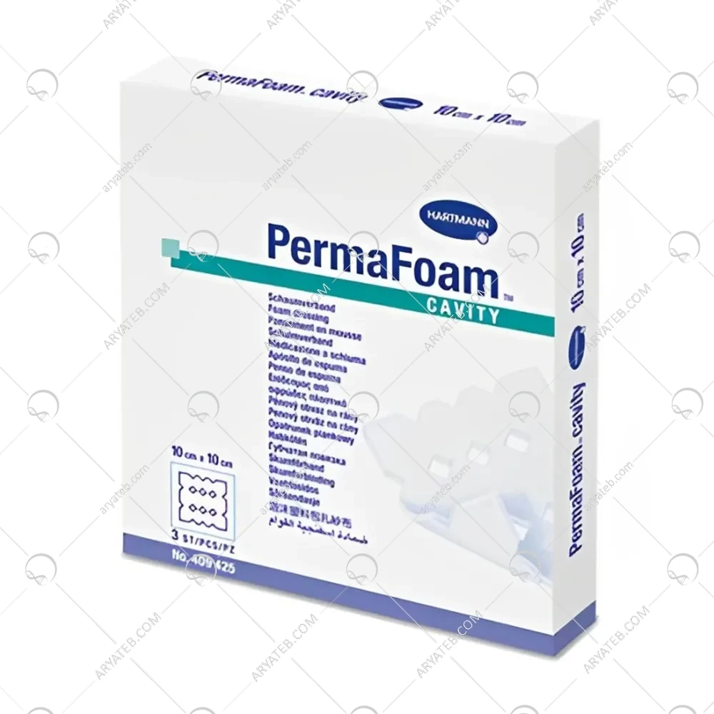 - پانسمان فوم پرکننده پرمافوم کاویتی هارتمن PermaFoam Cavity برای کنترل ترشح زخم هایی با ترشحات متوسط تا زیاد مانند زخم پای دیابتی و همچنین به عنوان یک پانسمان ثانویه قابل کاربرد است.