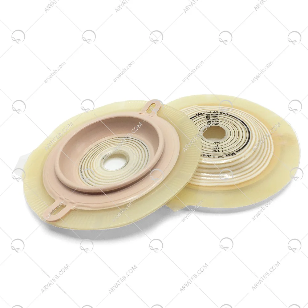 چسب پایه محدب دو تکه: این نوع چسبها از دو قسمت تشکیل شدهاند که به راحتی به هم متصل میشوند و برای استوماهایی که بیرونزدگی بیشتری دارند مناسب هستند.