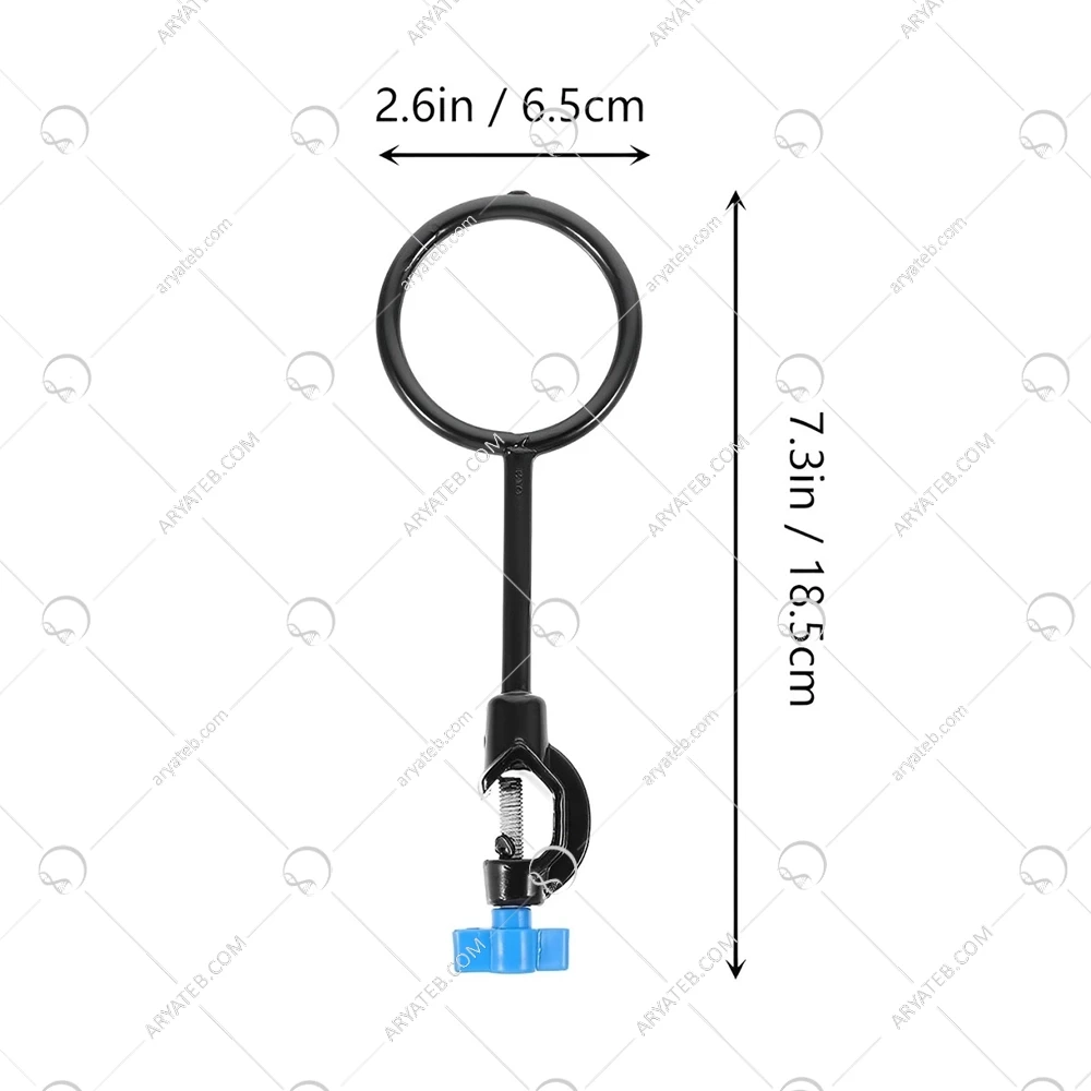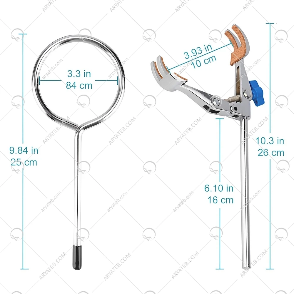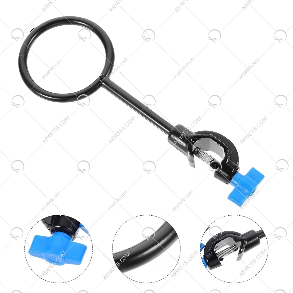 - گیره حلقه آهنی را میتوان برای تثبیت و نگهداری از انواع ابزار ها که معمولا در آزمایش تصویه و عملیات گرمایش استفاده می شود استفاده کرد.