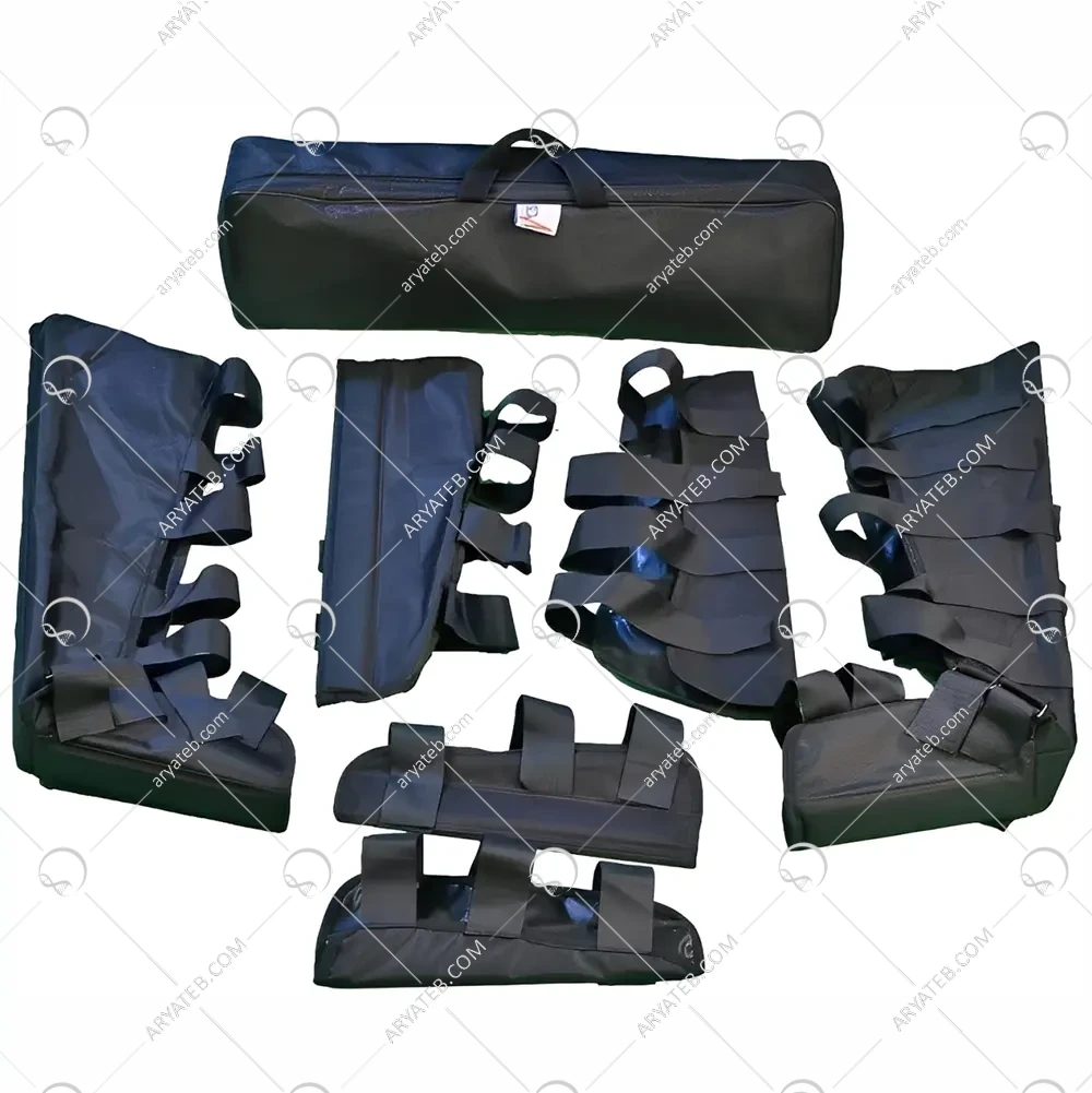 - دارای 6 سایز آتل سه آتل دست سه آتل پا (آتل ران، آتل بازو، آتل زانو، آتل مچ، آتل مچ پا، آتل ساعد)