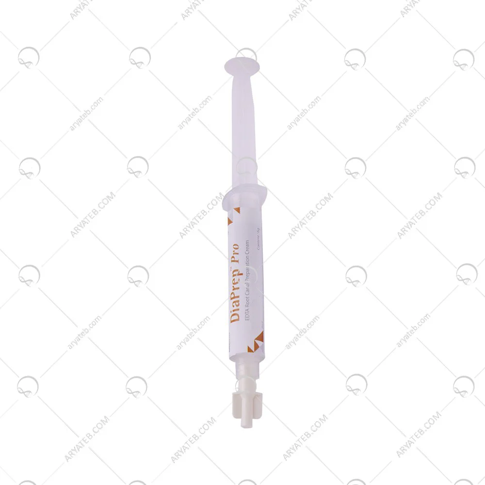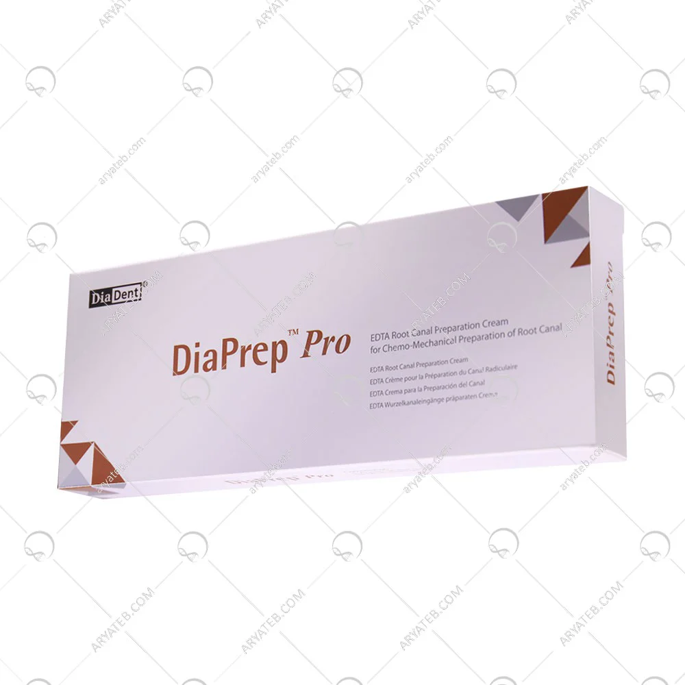 آرسی پرپ دیادنت ماده ای مناسب برای پاکسازی و پاکسازی ریشه در طول درمان ریشه است. این ماده حاوی اکسید اوره و EDTA است. اولاً، اکسید اوره با هیپوکلریت سدیم (عامل شستشوی کانال) واکنش می دهد و حباب های اکسیژن تولید می کند و در نتیجه زباله ها از کانال خارج می شوند. از طرف دیگر، EDTA اسمیر و انسداد کلسیفیه را از بین می برد. و با حذف مواد معدنی و یون های دو ظرفیتی از داخل کانال آن را تمیز می کند. علاوه بر این، این ماده روان کننده ای برای تسهیل حرکت سوهان و سایر ابزارهای اندو در کانال است. به مدت 1 دقیقه بشویید تا قسمت معدنی از بین برود سپس با محلول هیپوکلریت سدیم 1.3 درصد بشویید. زمان طولانی تر منجر به برداشتن بیش از حد عاج پیش لوله ای و داخل لوله ای می شود.