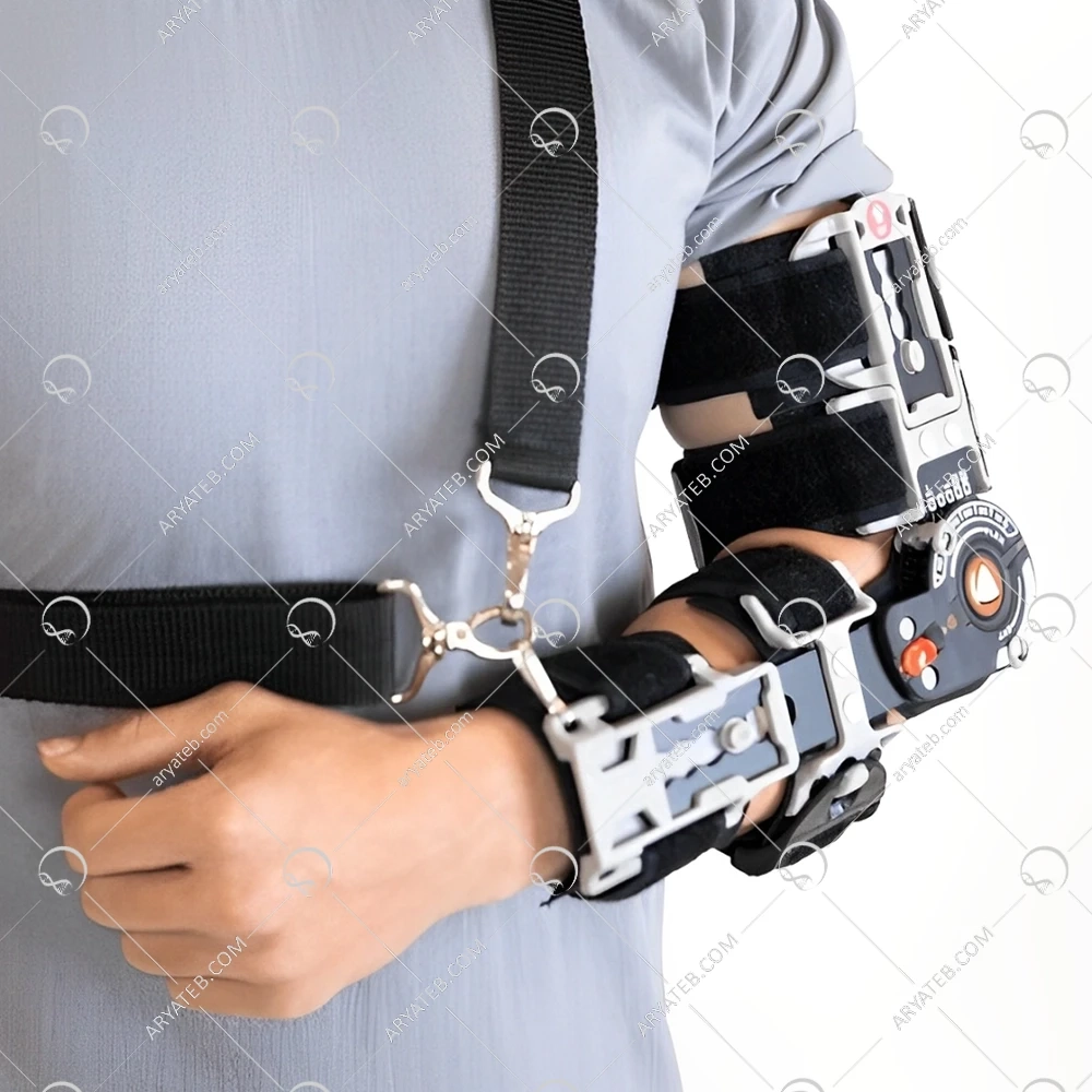 این آرنجبند مجهز به مفصل مدرج پیشرفتهای است که امکان تنظیم دقیق محدودیتهای حرکتی آرنج (فلکشن و اکستنشن) را فراهم میکند. با تنظیم زوایای خم شدن (فلکشن) و باز شدن (اکستنشن) بر اساس نیازهای درمانی و دستور پزشک، بیماران میتوانند حرکت آرنج را بهصورت کنترلشده مدیریت کنند، که این امر به بهبود ایمن و مؤثر کمک میکند.