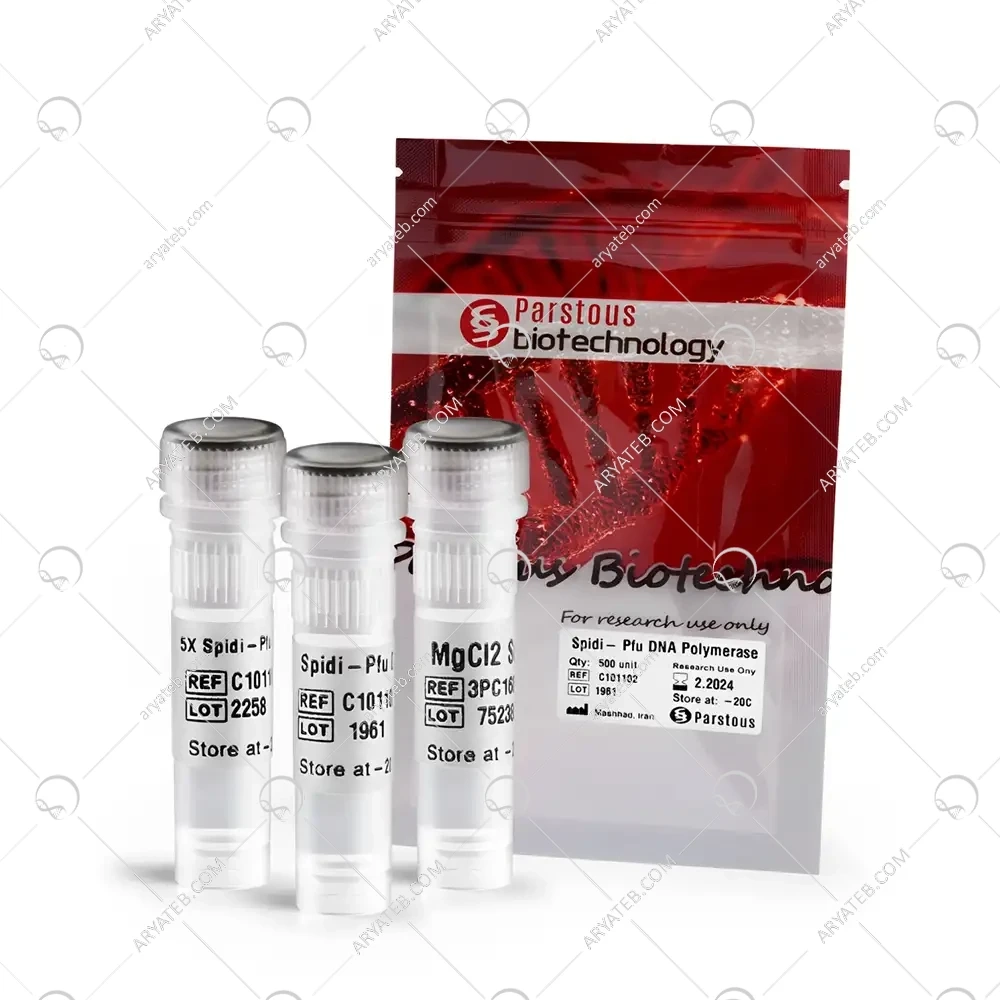 آنزیم DNA پلیمراز Spidi-Pfu پارس توس یک آنزیم نوآورانه با Fidelity و سرعت بالا برای انجام واکنش زنجیرهای پلیمراز (PCR) است. این آنزیم، که با نام Spidi™ Pfu DNA polymerase نیز شناخته میشود، یک فرم کیمری (Chimeric) از آنزیم Pfu است که در ناحیه N-ترمینال خود دارای یک پروتئین متصل به DNA میباشد. این مهندسی ژنتیکی منجر به بهبود چشمگیر در دقت و سرعت تکثیر DNA در مقایسه با آنزیمهای رایج PCR شده است.