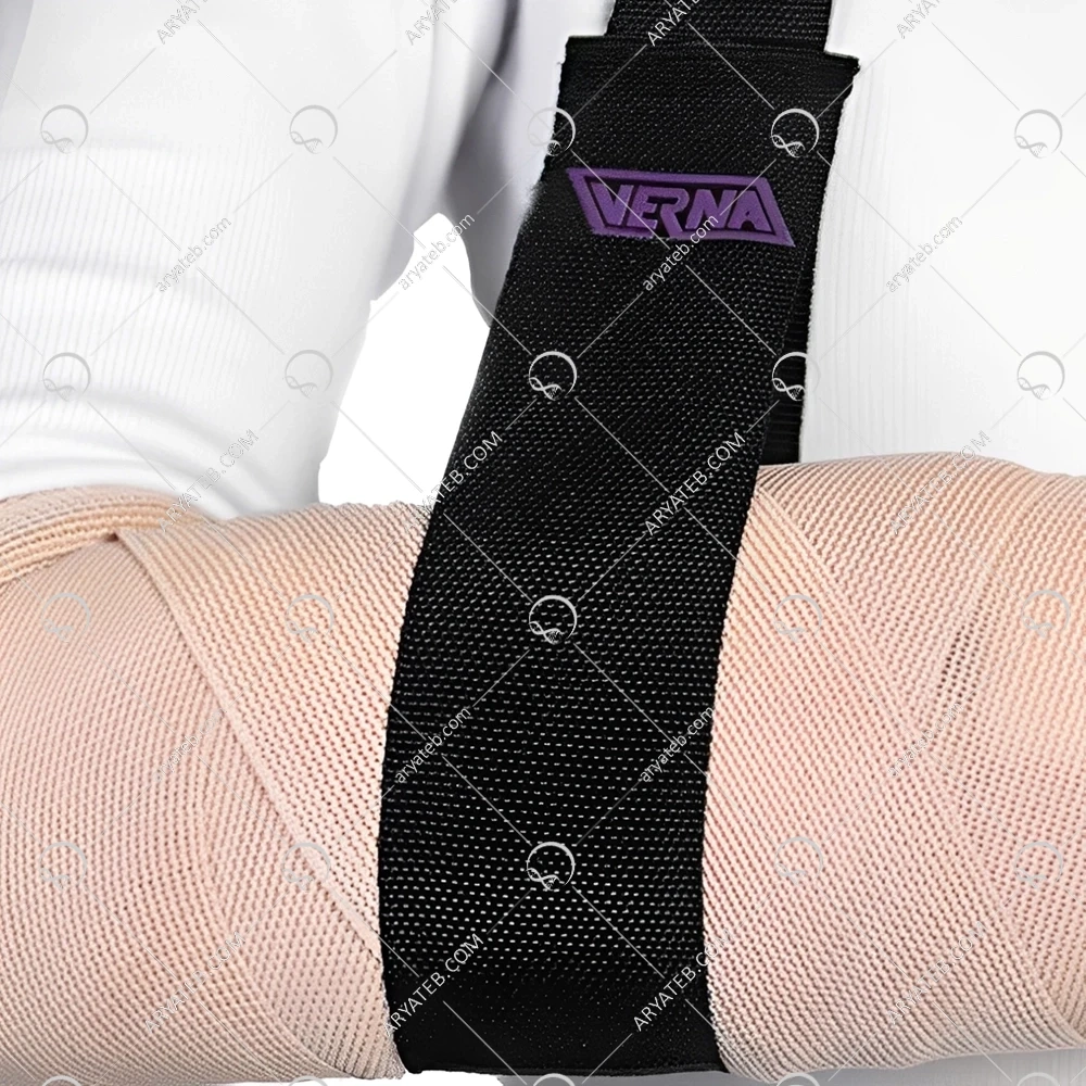 روش استفاده صحیح از آویز دست دو تکه ورنا به دلیل ساختار چند جزئی آن، نیازمند دقت بیشتری نسبت به آویزهای ساده است تا از قرارگیری صحیح و اثربخشی کامل آن اطمینان حاصل شود. در مرحله اول، بیمار باید در وضعیتی راحت قرار گیرد و دست آسیبدیده را به آرامی با زاویه ۹۰ درجه در آرنج خم کرده و در مقابل شکم خود نگه دارد. سپس، بخش نگهدارنده ساعد (کاف یا اسلینگ) باید روی دست قرار گیرد. این بخش معمولاً دارای یک بند گردنی یا شانهای است که باید از روی شانه سمت سالم عبور داده شود و ارتفاع آن طوری تنظیم گردد که ساعد موازی با زمین باشد. پس از تنظیم اولیه ارتفاع کاف ساعد، مرحله دوم که قرار دادن بند پهن سینهای-بازویی است، آغاز میشود. این بند بلند باید از پشت بیمار عبور داده شده و به سمت جلو آورده شود. بخش میانی بند باید دقیقاً از روی بازوی دست آسیبدیده عبور کند و آن را به آرامی به پهلوی بیمار بفشارد. سپس دو انتهای بند از روی شکم و قفسه سینه عبور کرده و به یکدیگر متصل میشوند، که این اتصال معمولاً به وسیله چسب ولکروی قوی صورت میگیرد. بسیار مهم است که این بند نه آنقدر سفت باشد که در تنفس یا گردش خون اختلال ایجاد کند و نه آنقدر شل که بازو قادر به حرکت و چرخش باشد. هدف، چسباندن ملایم اما محکم بازو به تنه است. پس از بستن بند سینهای، ممکن است نیاز به تنظیم مجدد ارتفاع بند شانهایِ کاف ساعد باشد تا دست در راحتترین و صحیحترین وضعیت خود قرار گیرد. در تمام مراحل باید اطمینان حاصل شود که هیچگونه فشار مستقیمی بر روی ناحیه جراحی شده یا نقطه شکستگی وارد نمیشود. بررسی منظم گردش خون در انگشتان (از طریق فشار دادن ناخن و مشاهده سرعت بازگشت رنگ صورتی) و اطمینان از عدم وجود بیحسی یا گزگز، ضروری است.