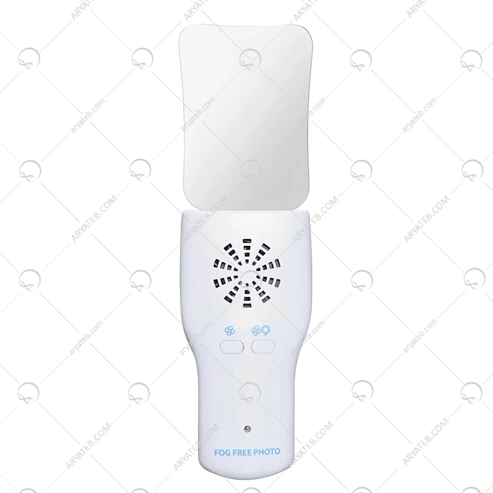تعریف آینه فتوگرافی فن دار: ابزاری دندانپزشکی برای عکاسی داخل دهانی، مجهز به فن برای جلوگیری از بخارگرفتگی و بهبود کیفیت تصاویر.