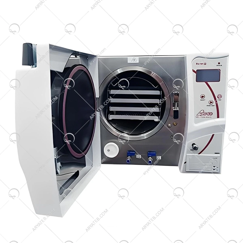 اتوکلاو آتریکو مدل بارن ۲۲ لیتری با طراحی مدرن و کاربردی، به راحتی در محیطهای کلینیکی جای میگیرد. بدنه دستگاه از جنس پلاستیک فشرده و فلز مقاوم ساخته شده و معمولاً به رنگ سفید یا نقرهای است. درب دستگاه دارای یک دستگیره محکم و سیستم قفل ایمنی است که باز و بسته شدن آن را آسان و مطمئن میسازد. پنل کنترل دیجیتال در جلوی دستگاه قرار گرفته و شامل یک صفحه نمایش خوانا است که اطلاعات مربوط به دما، فشار، زمان باقیمانده و مرحله فعلی چرخه را به وضوح نمایش میدهد. ابعاد دستگاه با توجه به ظرفیت ۲۲ لیتری آن به گونهای است که فضای زیادی را اشغال نمیکند و میتواند به راحتی روی میز یا در یک کابینت مخصوص قرار گیرد. طراحی ارگونومیک آن، کار با دستگاه را برای کادر درمانی راحتتر میکند.