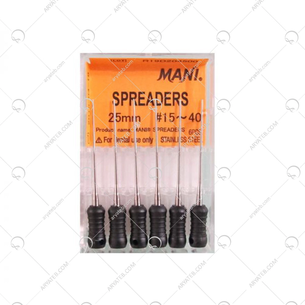 اسپریدر مانی ابزار مهمی هست که در دندانپزشکی ترمیمی و روش های ریشه مورد استفاده قرار می گیرند. از آنها برای ایجاد فضای بین دندان ها به منظور دسترسی بهتر به ناحیه تحت درمان استفاده می شود و همچنین می توان از آنها برای ایجاد فضایی برای پر کردن مواد یا بسته بندی گوتاپرکا استفاده کرد.
