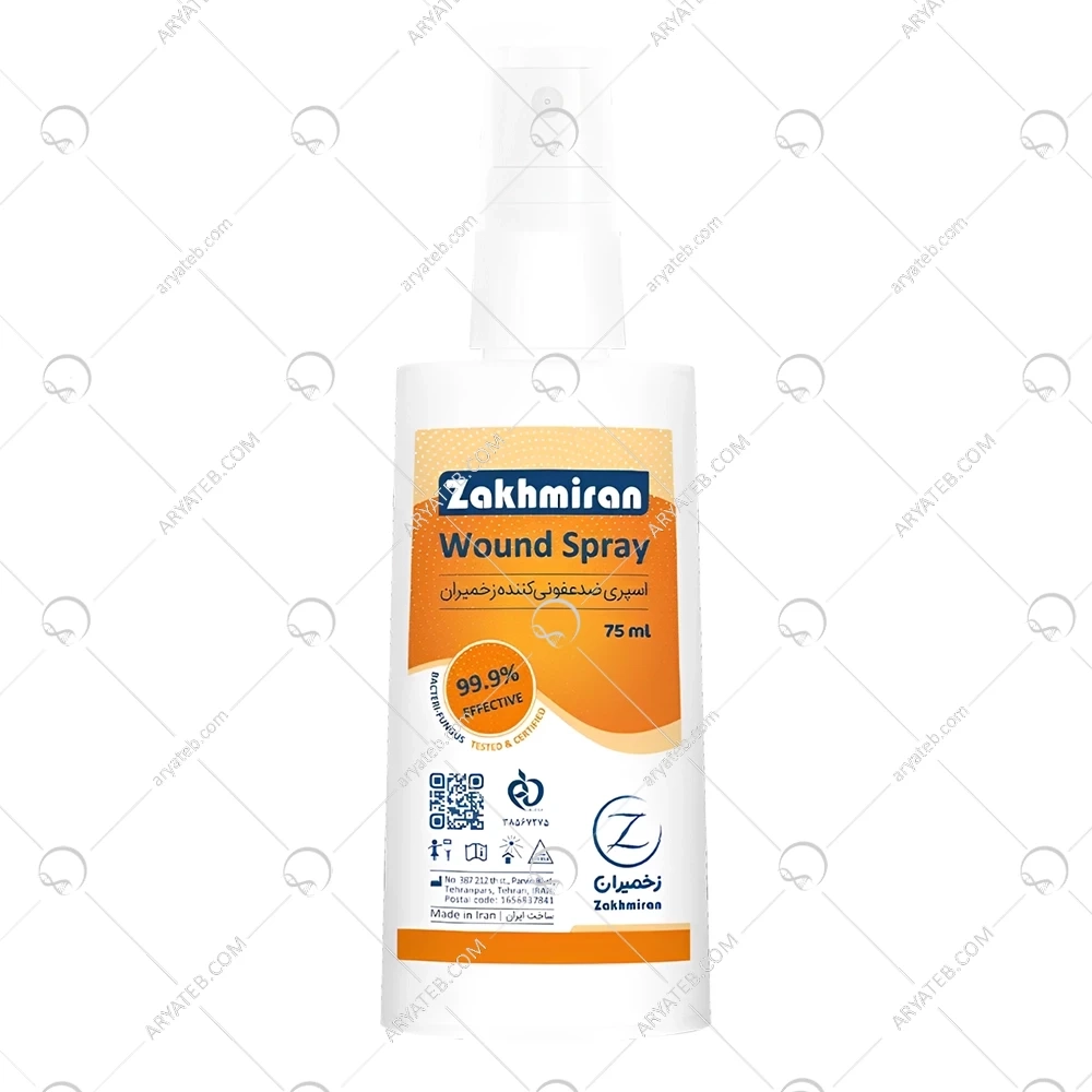 اسپری زخمیران: نمونهای از اسپری ضد عفونی کننده زخم با ترکیبات پیشرفته و کارایی بالا.