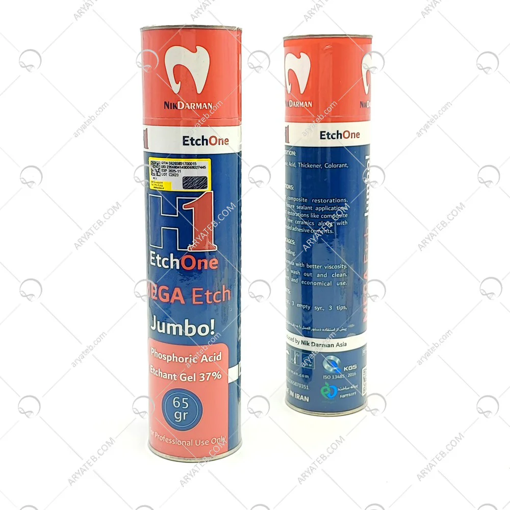 اسید اچ جامبو نیک درمان در واقع یک ژل رایج در دندانپزشکی است که حاوی 37% اسید فسفریک است. این ژل محصول کشور ایران بوده و کاربرد اولیه آن در ترمیم است، همچنین از این ژل اسیدی در ترمیم کامپوزیت روی دندان و جراحی ارتودنسی استفاده می شود. استفاده بسیار آسان و سریع، شستشوی آسان با جت آب و تضاد رنگی بالا از عوامل محبوبیت این ژل است. کاربرد اصلی این ژل اسید اچ جامبو نیک درمان در ترمیم کامپوزیت ها و زیبایی دندان است، اما در تمامی کاربردهای زیر می توانید از ژل جامبو 37% نیک درمان اسید H استفاده کنید.به طور کلی، فرآیند اسید اچ یک روش ایمن و موثر برای آماده سازی مینای دندان برای باندینگ است. این به ایجاد پیوند قویتر بین مینای دندان و مواد ترمیمکننده و همچنین سطح صافتری برای ترمیم زیباتر کمک میکند.