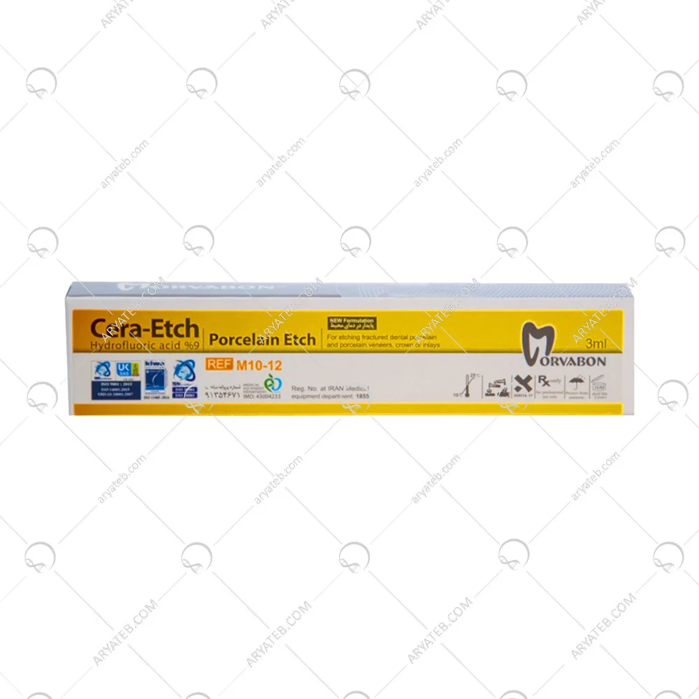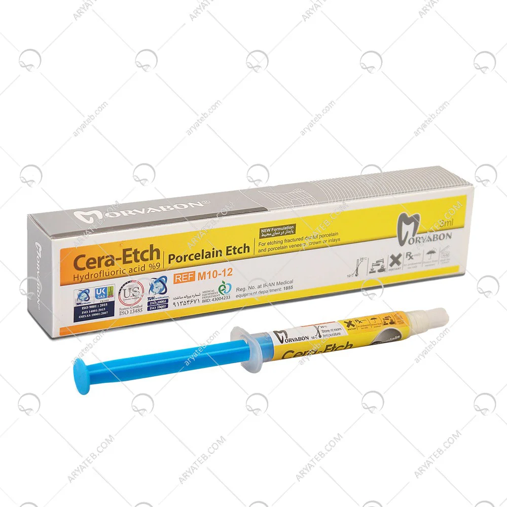 اسید اچ پرسلن مروابن با فرمولاسیون تقویت شده برای حک کردن سطح مینا و عاج و افزایش چسبندگی به پرایمرها، سیمان ها، باندها و انواع ترمیم ها طراحی شده است. قوام خوب و رنگ منحصر به فرد کار، شستشوی آسان و تشخیص بهتر محصول را تسهیل می کند. دندان ها را با چسب ماتریکس جدا کنید و از پخش شدن محصول روی لثه ها و بافت های نرم خودداری کنید. اسید اچ پرسلن مراوابن را روی سطح مینای دندان تزریق کنید و 20 ثانیه صبر کنید سپس آن را روی عاج بمالید و 10 ثانیه دیگر صبر کنید. ژل را با آب بشویید و سطح دندان را با هوا خشک کنید. اگر سطح مینا سفید گچی نیست، مرحله 2 را به مدت 10 ثانیه تکرار کنید.