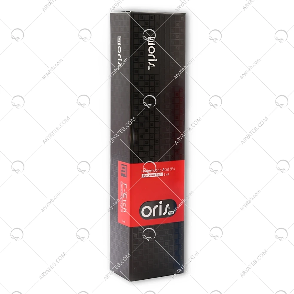 Oris F Etch بهصورت ژل قرمز شفاف عرضه میشود که تمایز آن از سطح پرسلن را آسان میکند. سرنگها با سوزن نازک برای کاربرد دقیق طراحی شدهاند. بدنه سرنگ از پلاستیک مقاوم ساخته شده که در برابر خورندگی اسید مقاوم است. هر سرنگ حاوی 3 میلیلیتر ژل است، که برای چندین کاربرد در ترمیمهای کوچک کافی است.