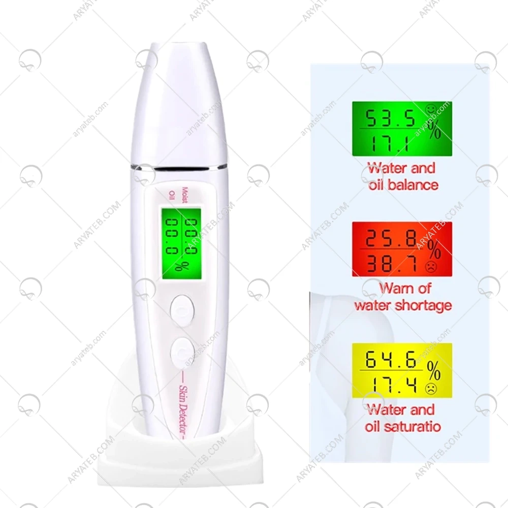 آنالیزور رطوبت سنج پایه دار ابزاری مناسب برای اندازه گیری میزان رطوبت و چربی پوست است. که در بسیاری از کلینیک های پوست و زیبایی و داروخانه ها بسیار مورد استفاده است.این محصول راهنمای بسیار خوبی برای شروع درمان های مختلف پوست می باشد. این آنالیزور دقیقا اعداد و ارقام درست را در خصوص چرب, خشک و یا مرطوب بودن پوست به شما نشان می دهد.این دستگاه انالیزور مجهز به آخرین تکنولوژی آنالیز امپدانس بیو الکتریک می باشد و تواند بدون ایجاد زخم و اسیبی به شما خدمات حرفه ای مراقبت از پوست ارائه دهد. این دستگاه دارای دو صفحه نمایشگر است که به طور دقیق سطح رطوبت و چربی پوست اندازه گیری شده توسط آنالیزور دیجیتال را نشان می دهد.