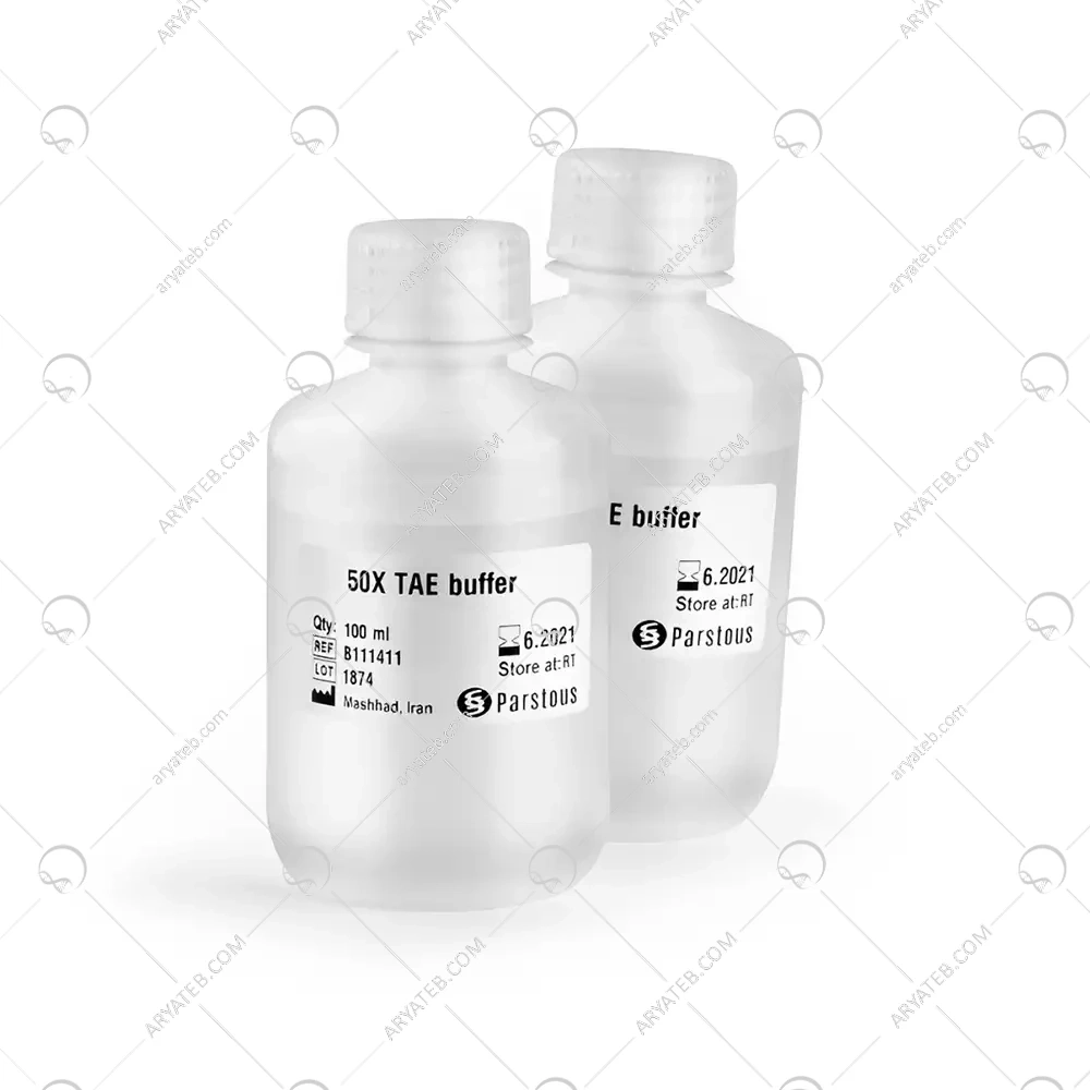 بافر الکتروفورز TAE (50x) پارس توس یک محلول بافری غلیظ (50 برابر غلظت کاری) است که برای استفاده در الکتروفورز ژل آگارز به منظور جداسازی اسیدهای نوکلئیک (DNA و RNA) در آزمایشگاههای بیولوژی مولکولی تولید میشود. این بافر حاوی ترکیبی از تریس (Tris base)، اسید استیک (acetic acid) و EDTA (ethylenediaminetetraacetic acid) است که هر کدام نقش مهمی در عملکرد آن دارند.