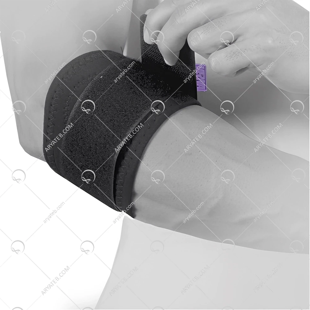 موقعیتیابی: باند را 2 تا 5 سانتیمتر زیر برجستگی استخوانی آرنج، روی عضله ساعد قرار دهید.