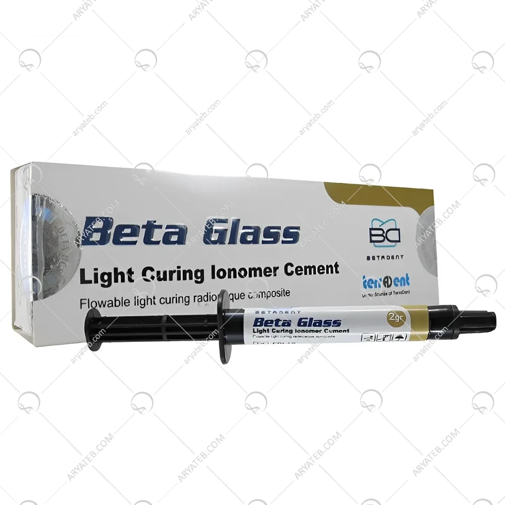 بتا گلس محصولی از شرکت بتادنت است که به عنوان یک چسب کامپوزیتی نوری (Light Curing Glass Ionomer Cement) شناخته میشود. این محصول برای پر کردن حفرههای کوچک، محافظت از عصب دندان و همچنین به عنوان یک لایه زیرین برای ترمیمهای بزرگتر استفاده میشود.